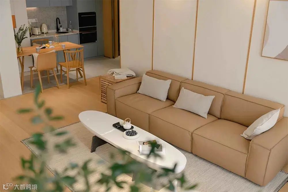 如果你家地面颜色与奶茶风不太兼容,可以选择用大面积奶茶色的地毯去盖住原地板的颜色与材质。