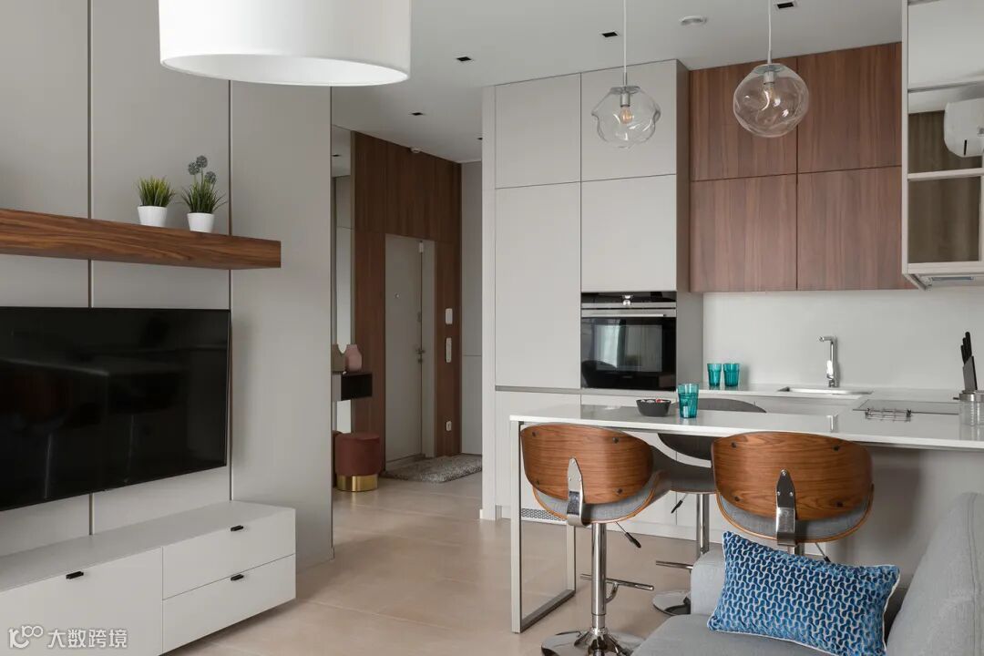 大面积使用白色或浅奶茶色,应用到墙面。