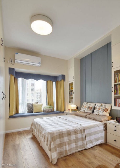 卧室是比较隐私的空间,而且是我们休息的区域,它适合用暖色,给人一种休闲的舒适感,不过暖色的墙面不要弄得太多会显得压抑,光线好的卧室适合用些深色装饰墙面能把主人的个性展示出来。