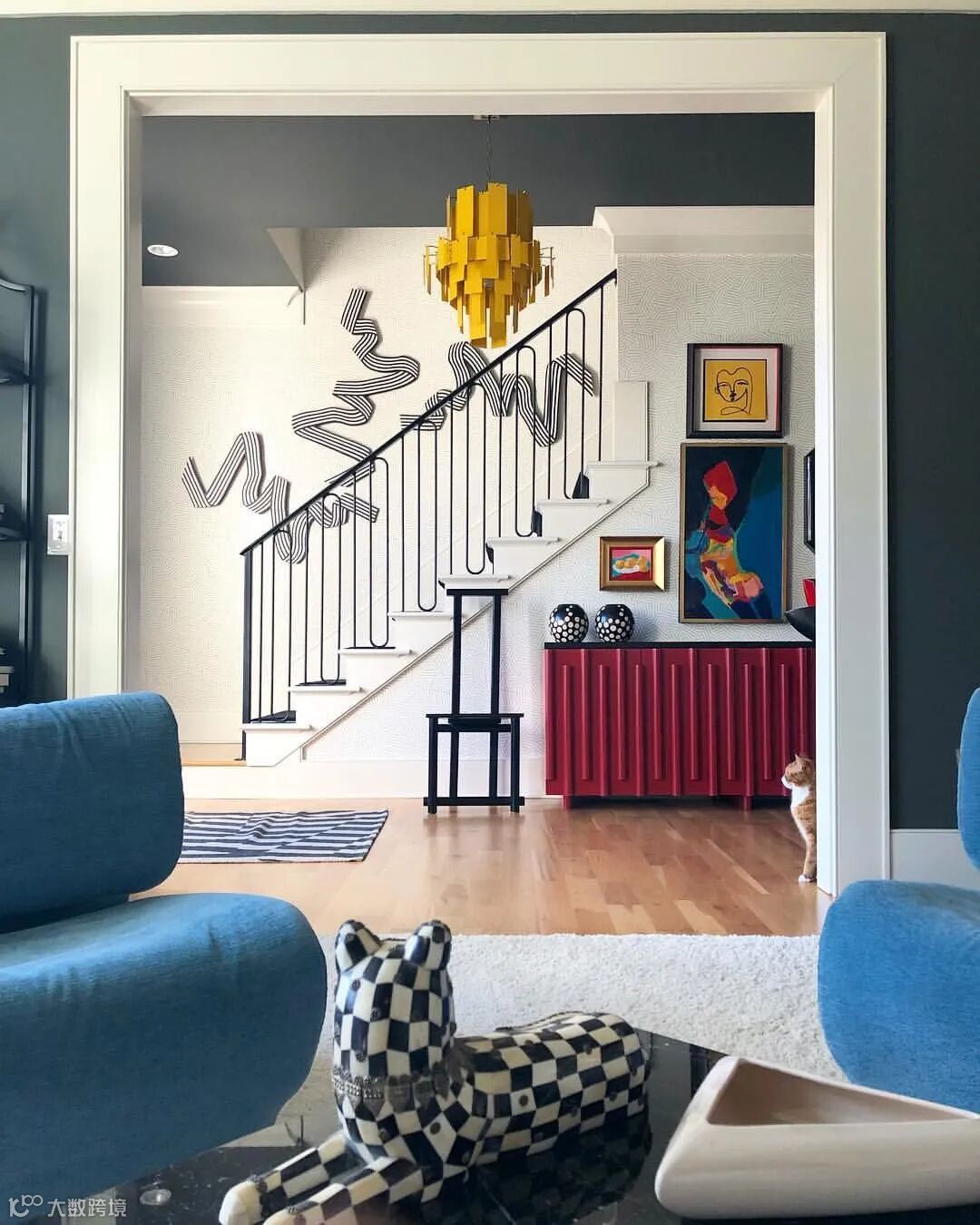 重装修是后现代装修风格典型的特点,将石膏线和护墙板等重新组合起来,运用夸张和抽象的各种手法在视觉上带来精彩的呈现也是后现代设计的一大特点。
