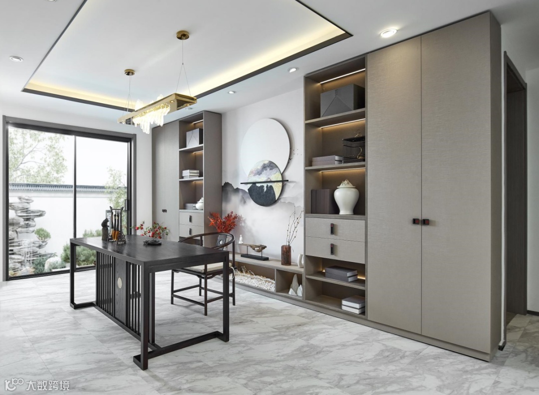 比如黑白灰和金属铁艺可以打造轻工业风,原木材质和植物盆栽能营造自然生机之感,水墨画和印章元素呈现的就是雅致有韵味的新中式风。