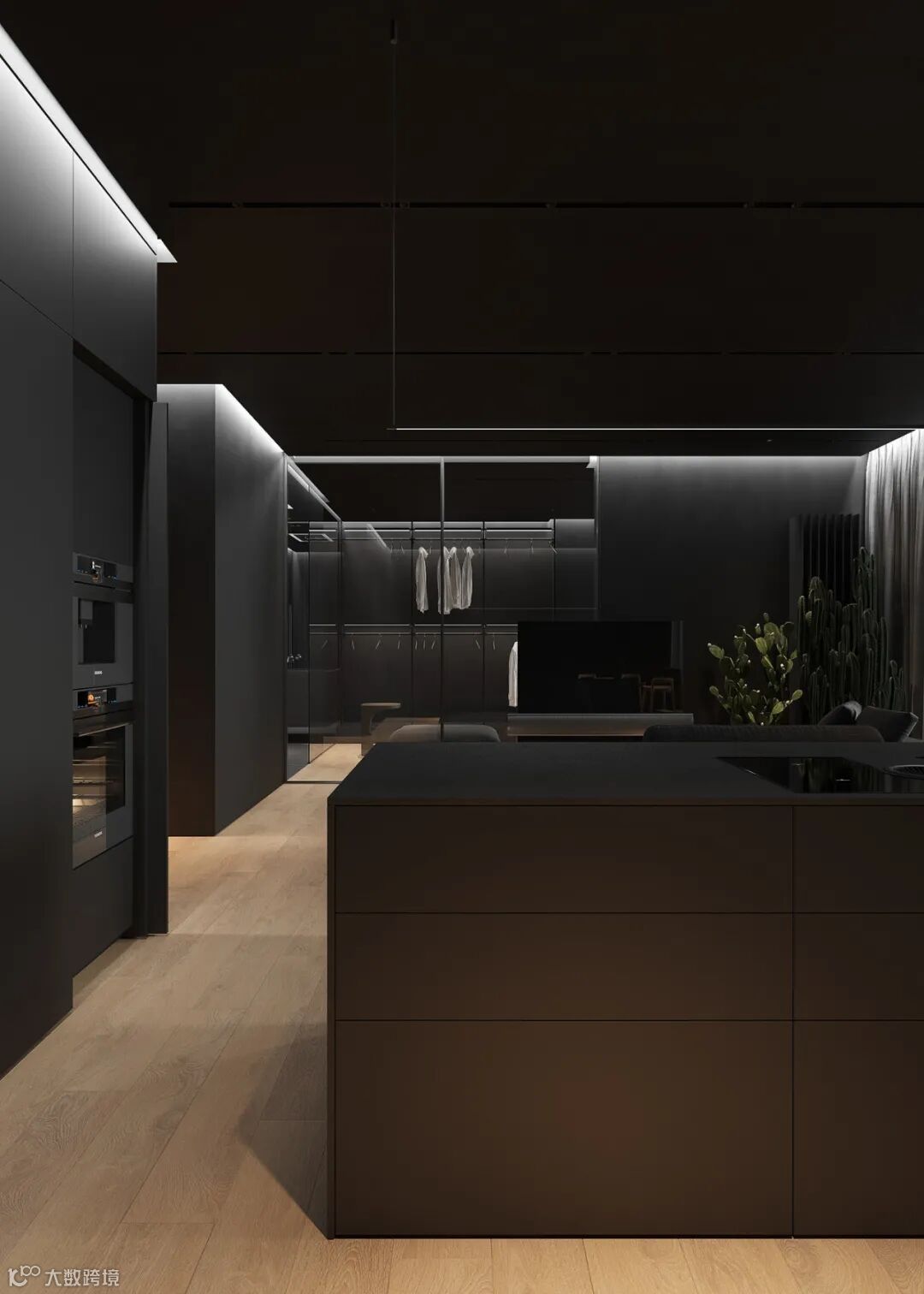 这一套现代简约风的居室设计中,以高级黑作为空间的整体基调。