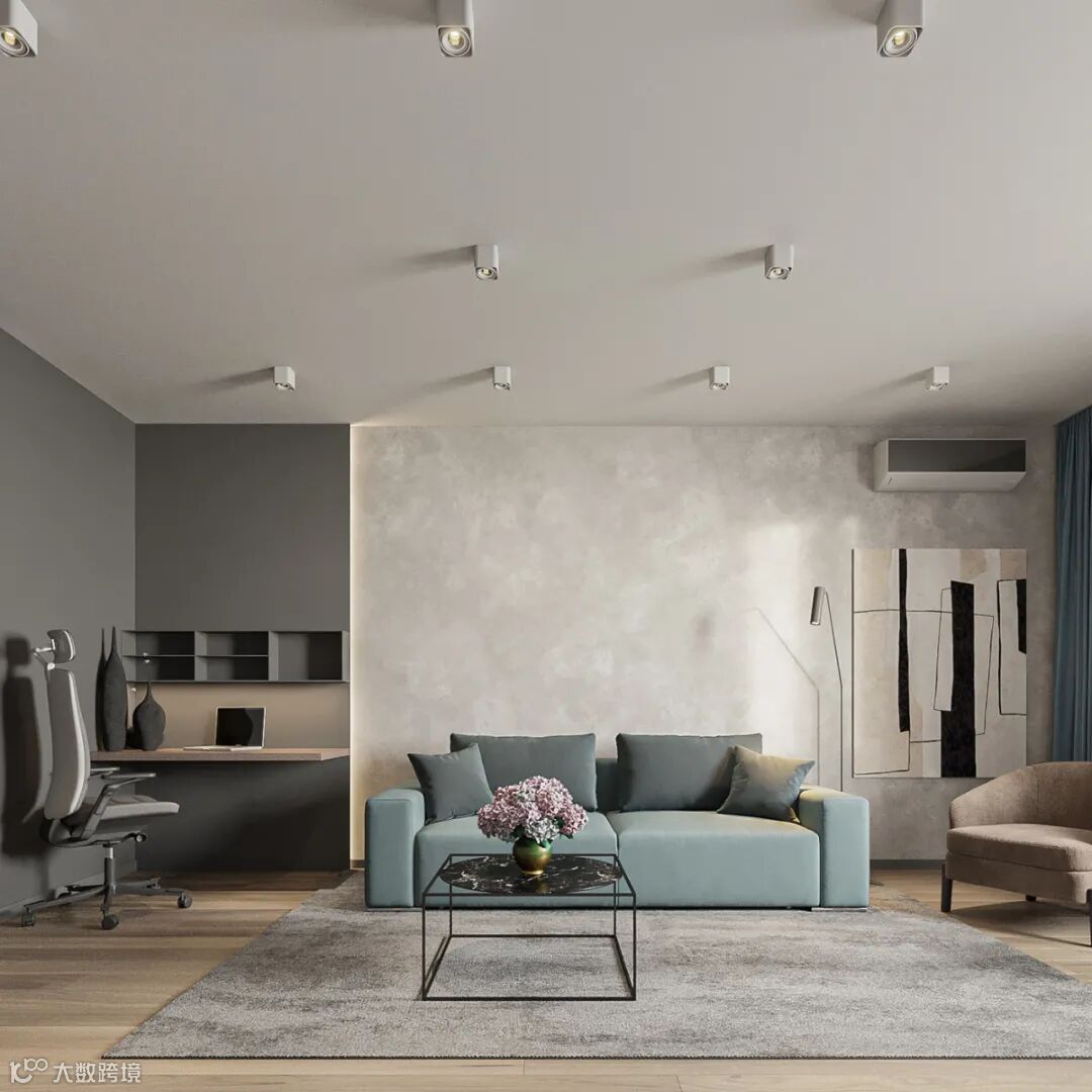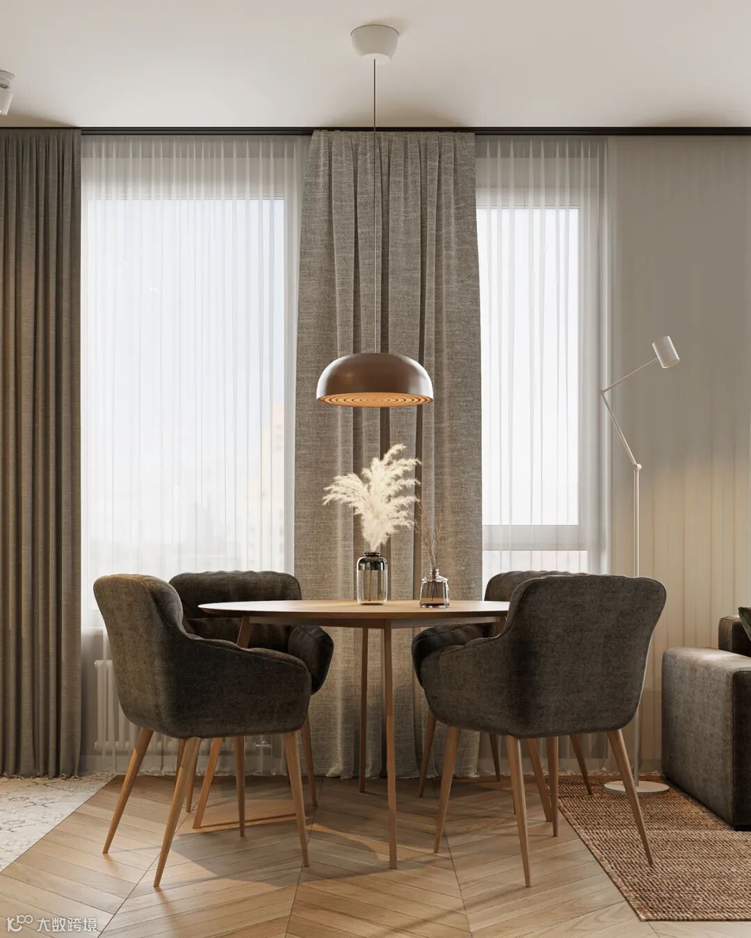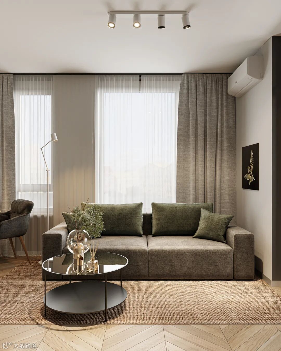 75㎡简约现代,色调上采用经典的莫兰迪色系,通过软硬装上的搭配组合,营造出