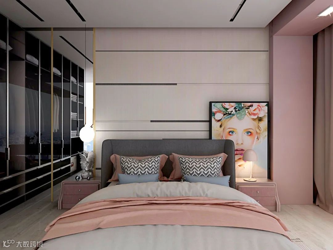 从而使卧室具有高雅而温馨的氛围,用绿色作为点缀色,也会让空间更加活泼。