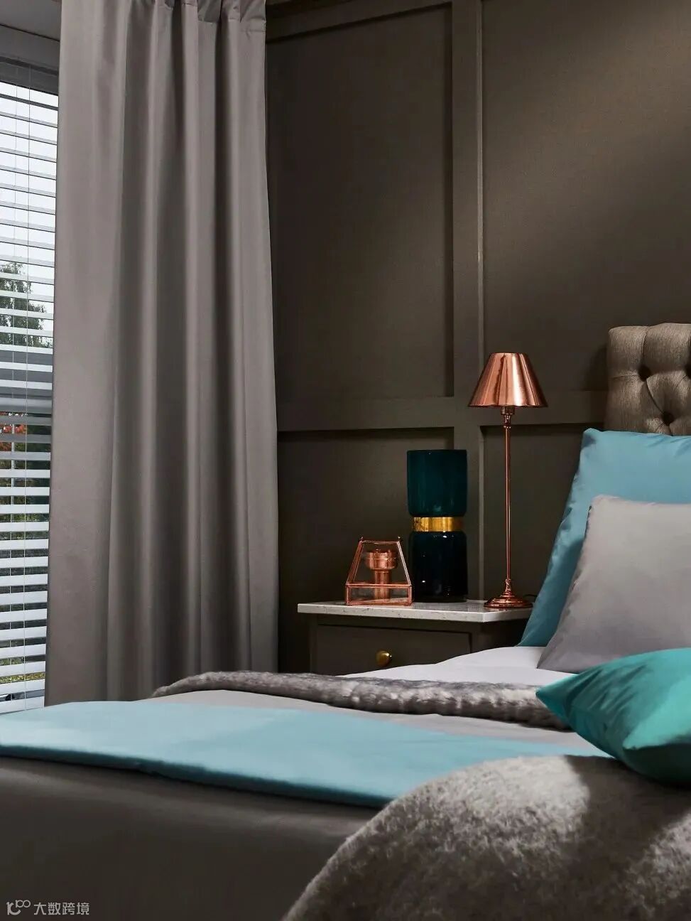02.卧室对整体私密性的要求较高,可以选择质地较为厚实的绒布布料,能有效的阻挡光线,并起到一定的隔音作用。