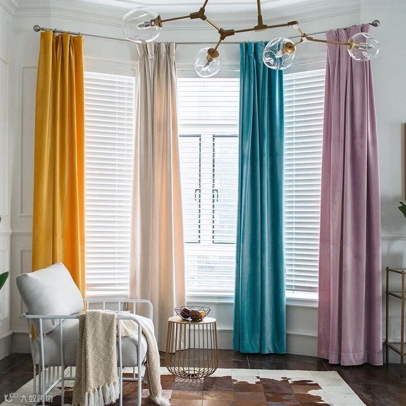 04.绒布窗帘,垂坠感好,不宜褪色,吸音、隔热、保温。缺点是面料厚重,清洗比较麻烦。