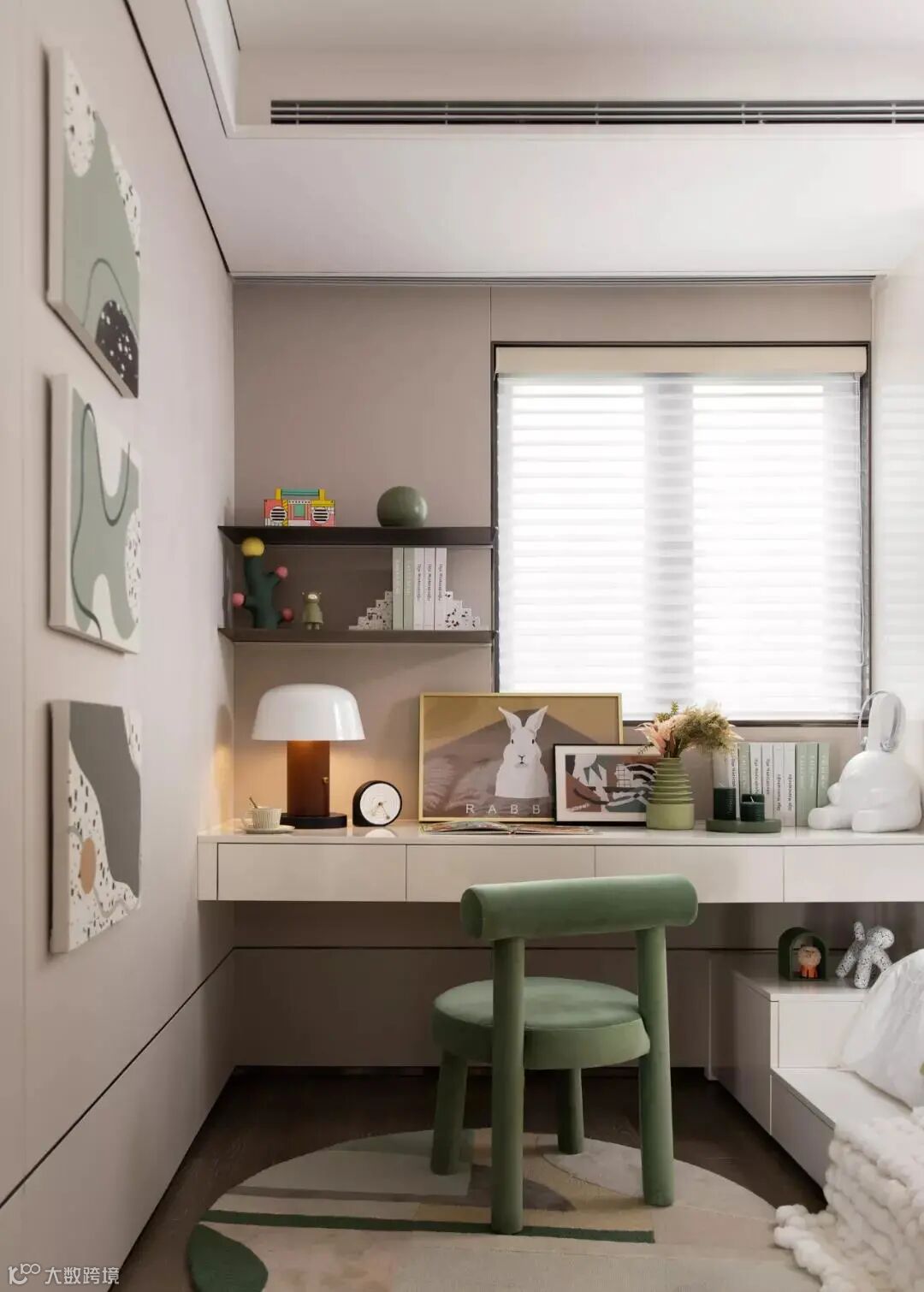 注意事项:房间的风格需要保持比较中立,建议选用简约且百搭的样式,方便日后更换或优化。