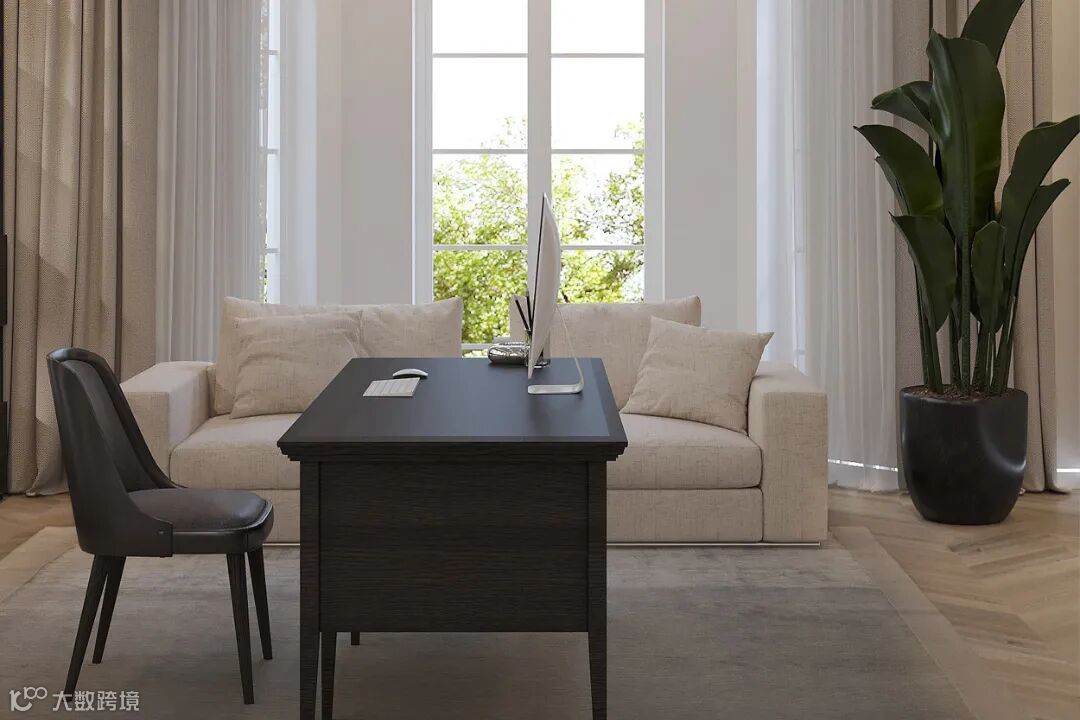 书房部分,大面的书柜为用户提供了充足的摆放书籍的空间,绿植的存在令空间看起来更具自然气息。