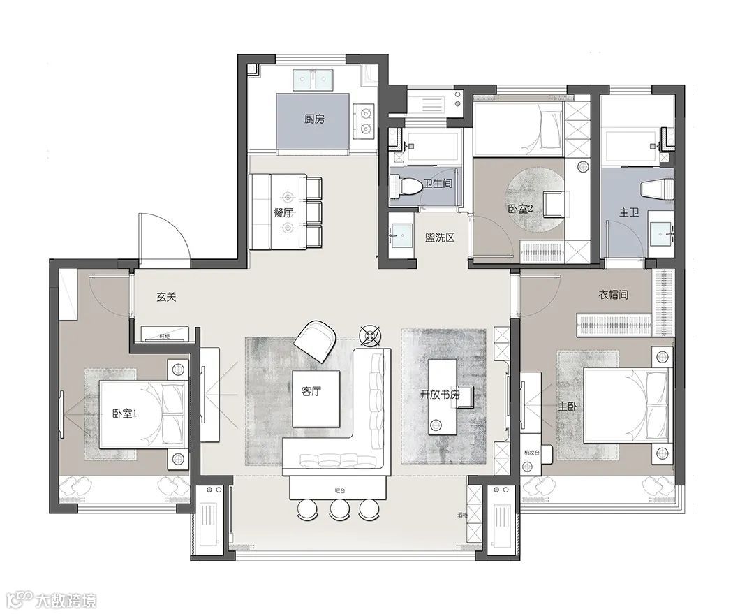 黑白灰的精准适配作为空间的主旋律,开启了高级灰的格调。