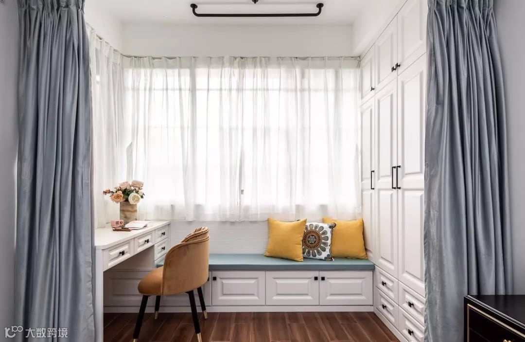 卧室阳台还可以做为女主人的梳妆区,化妆的时候更加明亮,心情都显得好漂亮。
