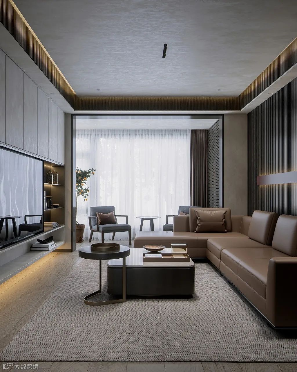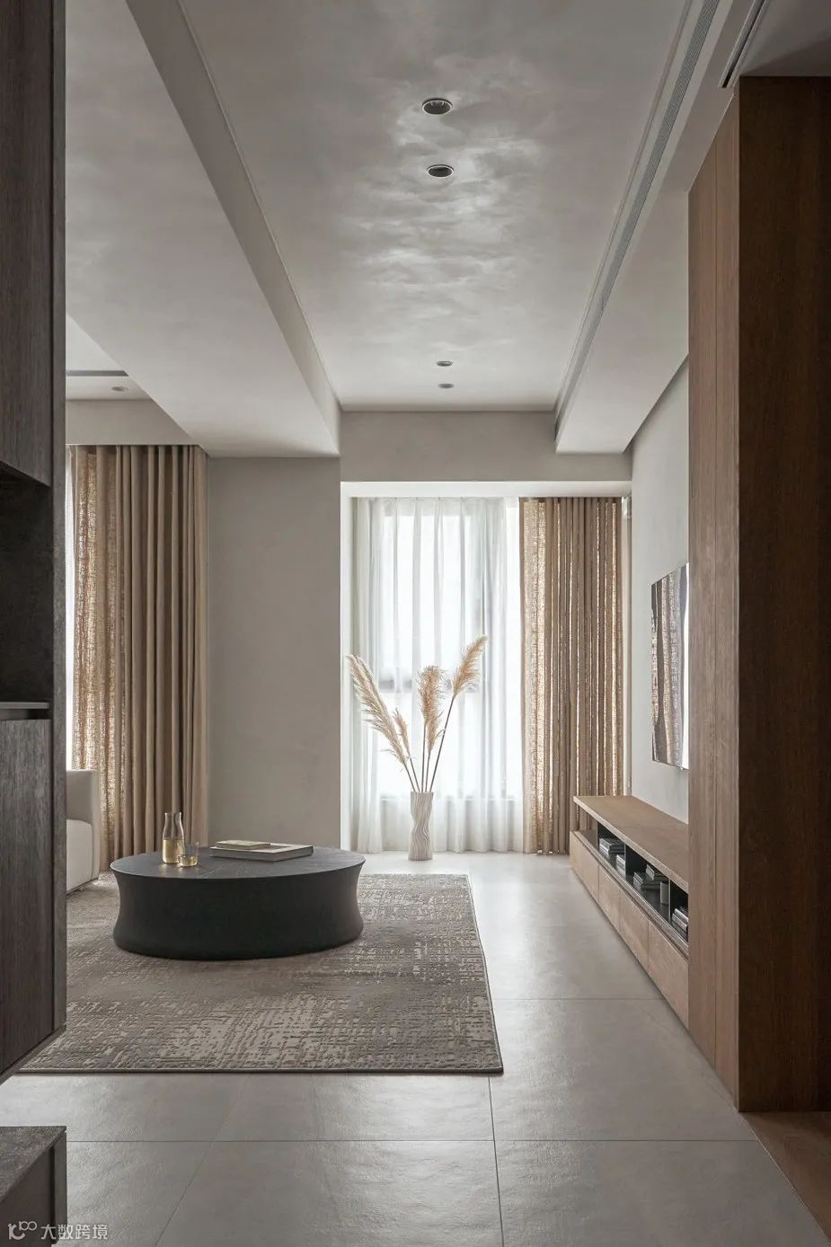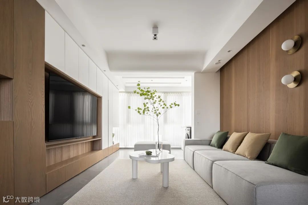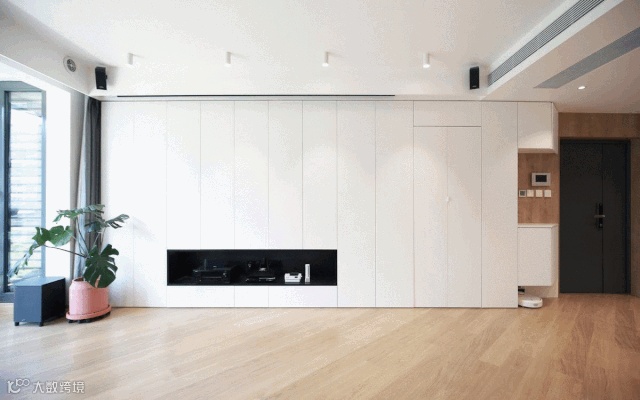 ▶ 如果是不怎么看电视的,那就做隐藏式设计,用移门遮盖电视,打造一个没有电视的客厅(不想让娃看电视那就别让他们看见电视)。