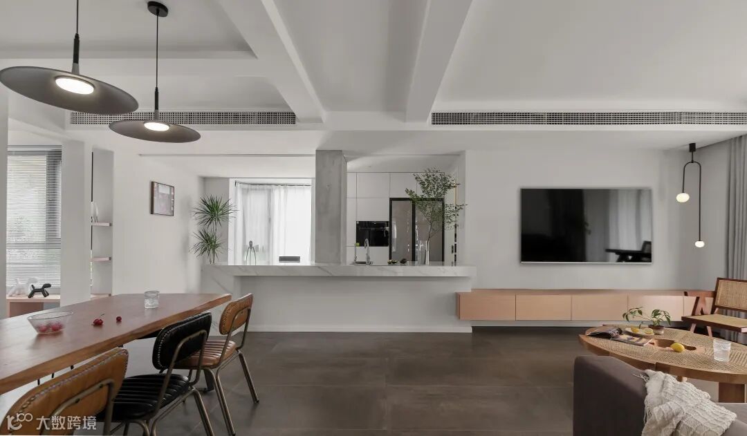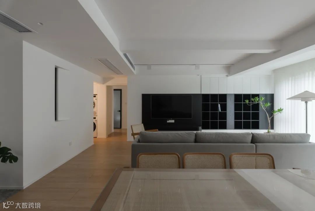 ▶ 以电视为中心,定制“回”型收纳区,藏八露二规划,既不影响展示、也没有太大的清洁负担。