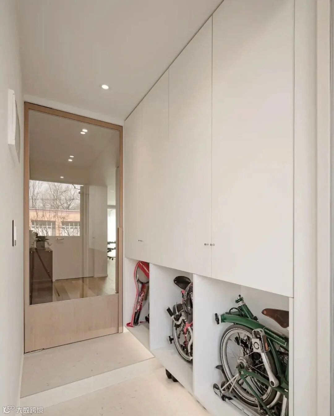 根据层高和车子数量,选择自行车停车架/顶天立地立式停车架(或洞洞板+自行车上墙件),适合放在玄关、墙角、车库,不占地面空间、不影响走路。记得不要挂太高。