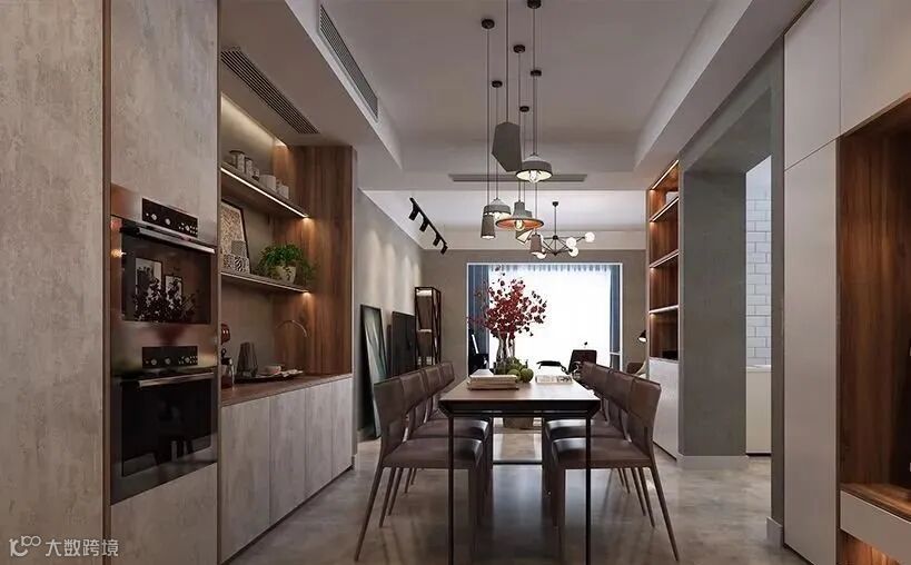 1、餐厅增添餐边柜,部分人群不习惯使用餐边柜,但是从实用性上看餐边柜是收纳的小能手,餐厅中的茶具、餐具以及一些摆件都可以通过餐边柜解决,还可以增添一些装饰物件在餐边柜上形成一种天然的装饰,用餐的氛围感和设计感更强。