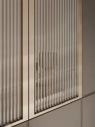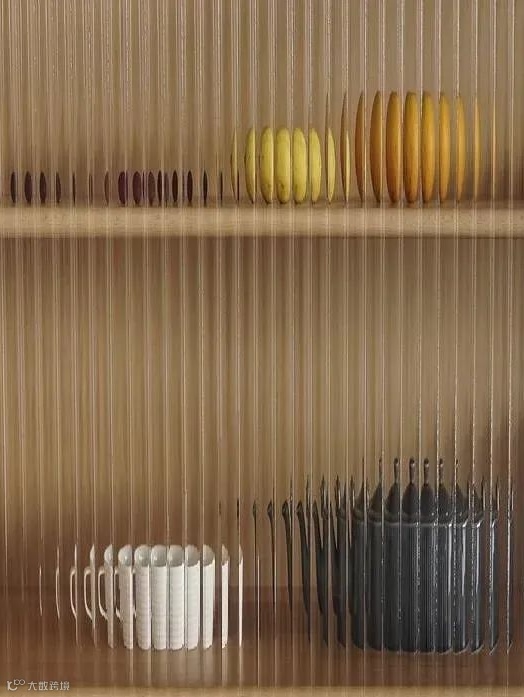 置于各类柜体中的长虹玻璃,磨砂的质感,竖行的纹路,在感官上赋予其独特的艺术气息。