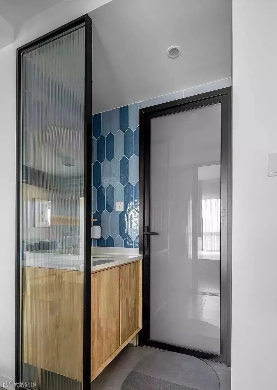 在进门处加入长虹玻璃的设计,不仅不影响室内格局,还能避免室内空间一览无遗,安全感十足!▼