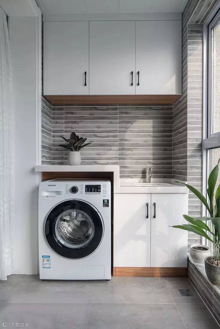 ▲ 用隔板隔出洗衣机放置的空间,丝毫不影响上方空间做别的用途。
