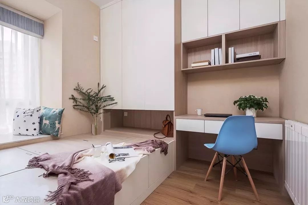 ▲ 想讲求实用的小伙伴可以在飘窗部分增加储物功能,比如在飘窗两边的墙打两个柜子,妥妥的储物空间。