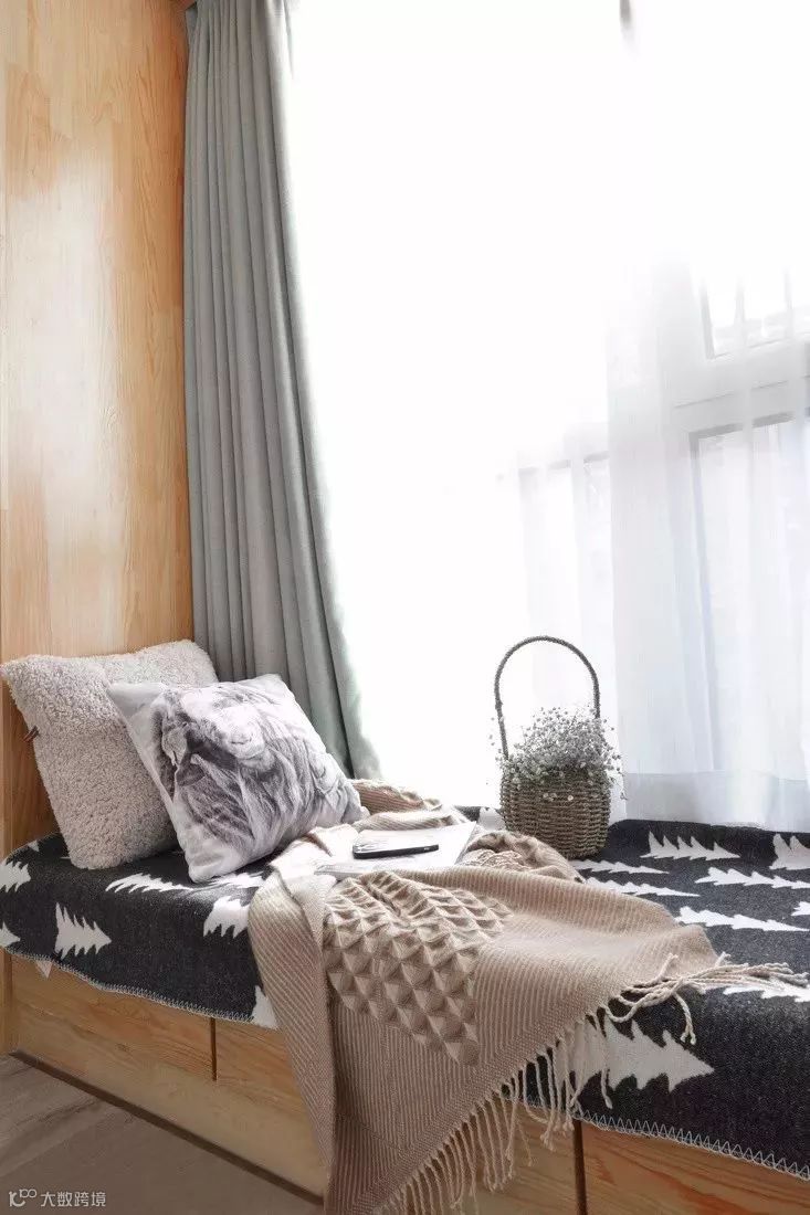 ▲ 其实飘窗设计不需要大的改动,你只需要选择和窗帘、床品、墙面等风格相近的布艺靠垫,有层次的摆放好,再选择一款坐垫或榻榻米垫,搭配一个小毯子,就可以打造标准的休闲阵地。