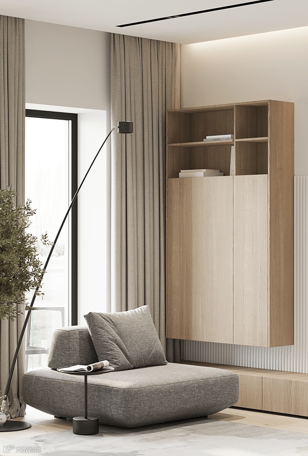 83㎡的私宅,灰白木色调的运用,在细节上突显细致的简约风,将简约活泼和品质感相融合。