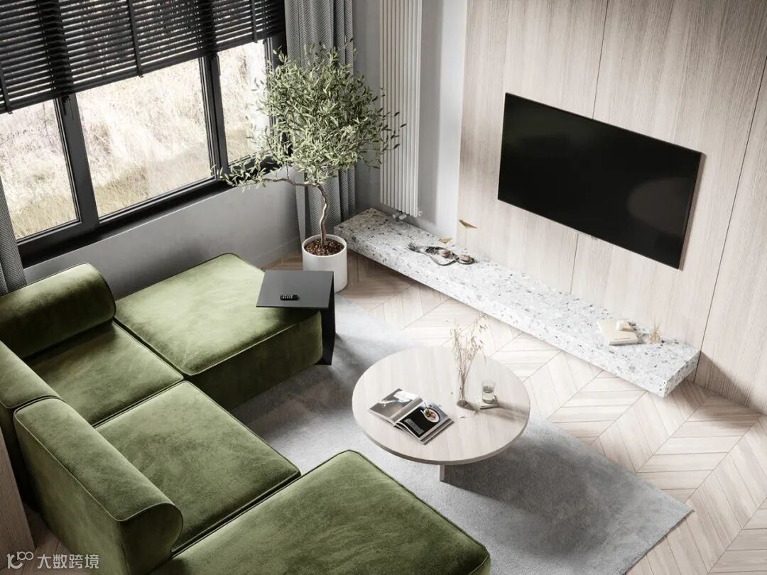 对于面积不大的户型来说,整面墙的电视柜会比较压抑,悬浮式的轻薄电视柜体能有效减轻厚重感,化繁为简,增加了空间活动面积,将客厅的高级感拉满,颇受年轻人的青睐。