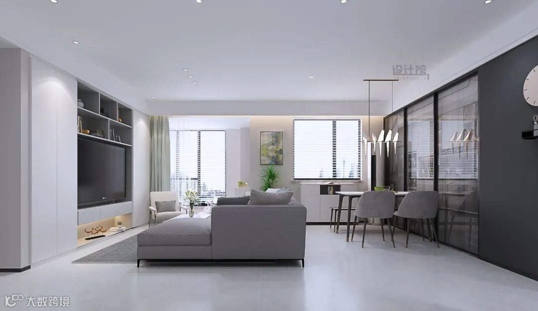 随着开发人员户型设计的多样化,现在横厅户型越来越常见,横厅长,为了保障电视墙壁的完整性,一般横厅户型选择沙发不靠墙的设计方案。