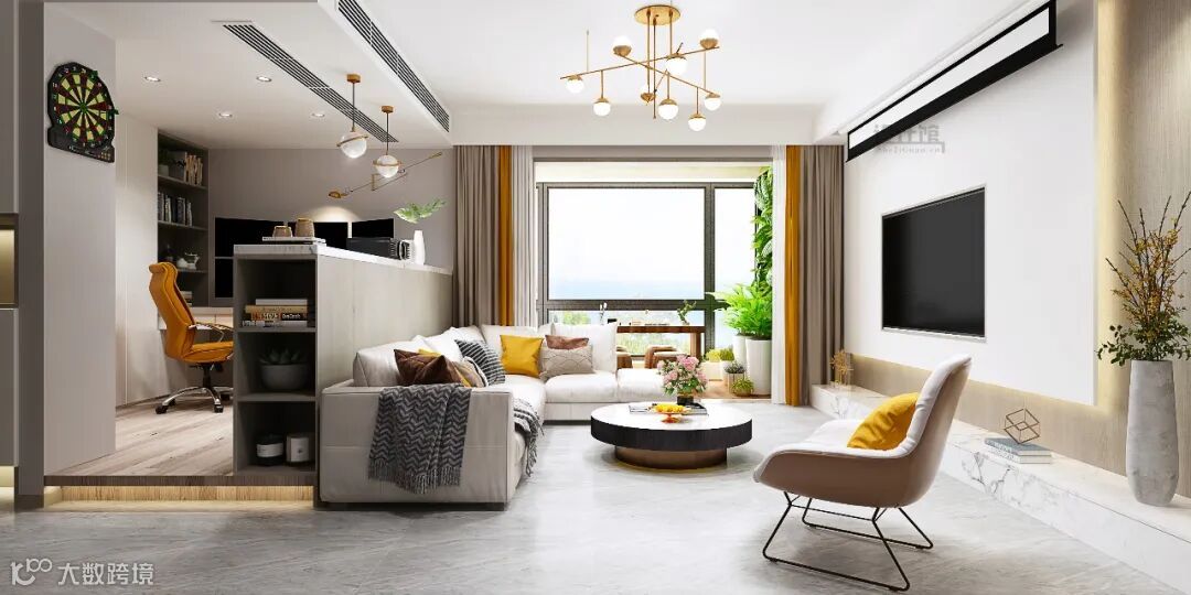 沙发不依靠墙壁的配置方式,如果能增加空间的开放感,相信越来越多的家庭会这样设计。