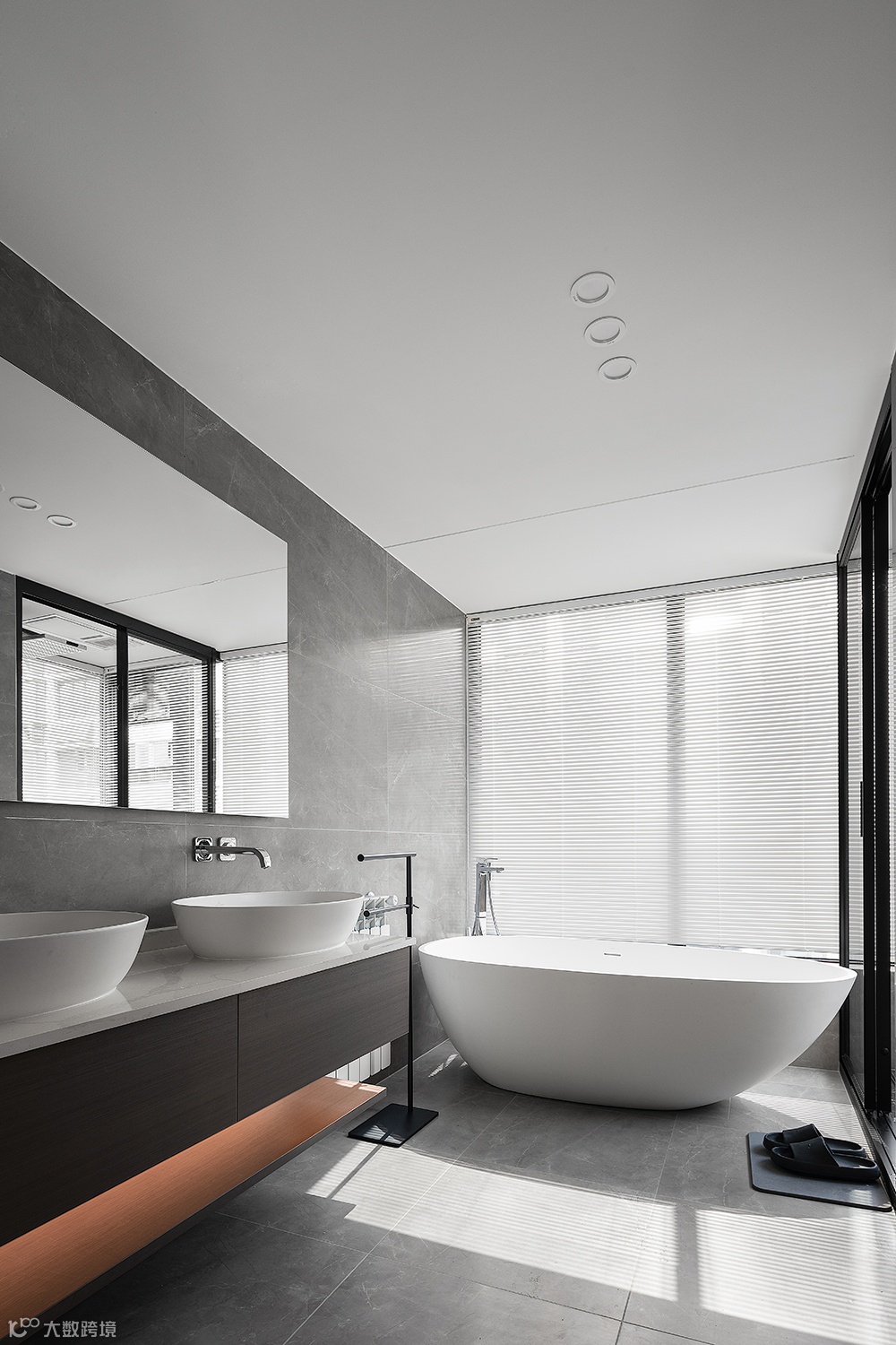 把浴缸放在百叶窗边,当有阳光洒进来时,光影就能带来满满幸福感!