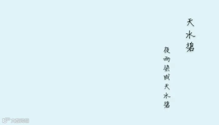 天水碧,浅青色。古代丝帛染色名。相传为南唐后主李煜的姬妾所染。