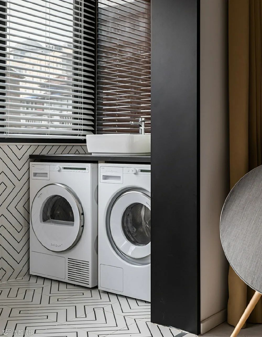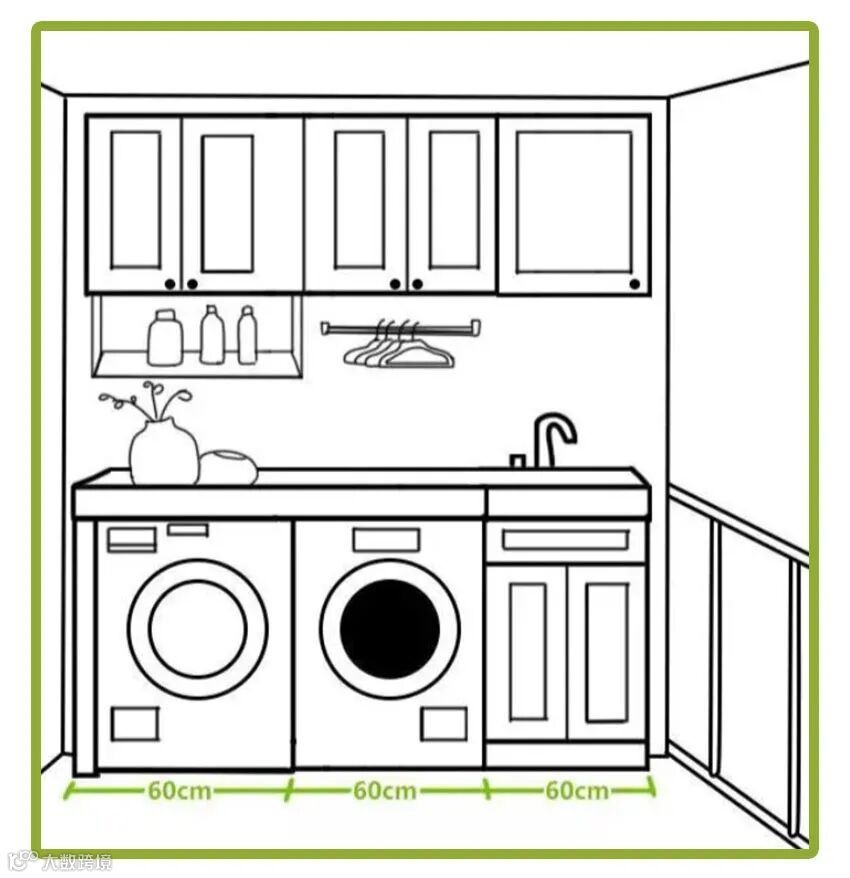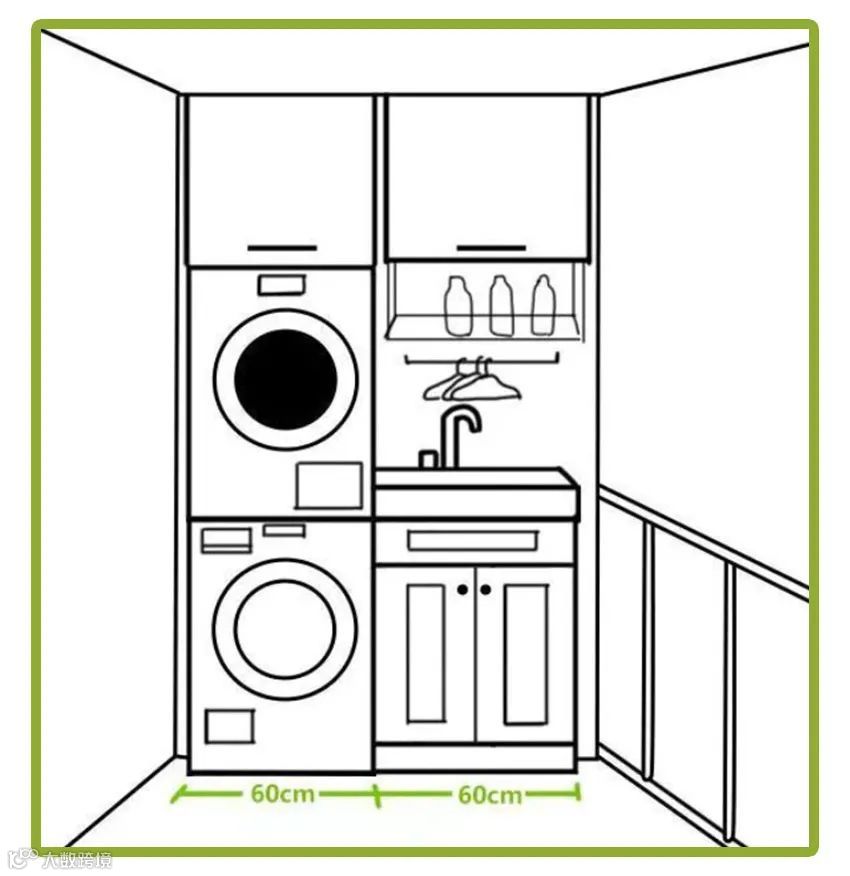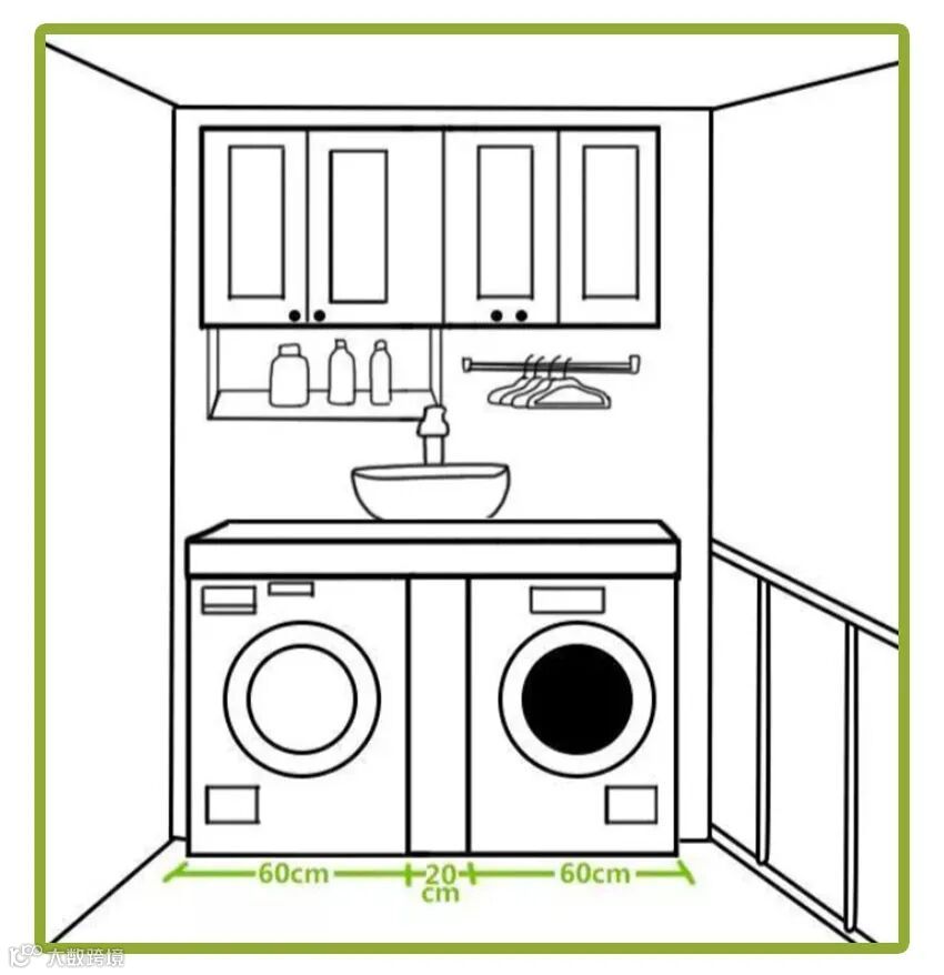 01.洗衣机烘干机并排摆放+洗手池+隔板