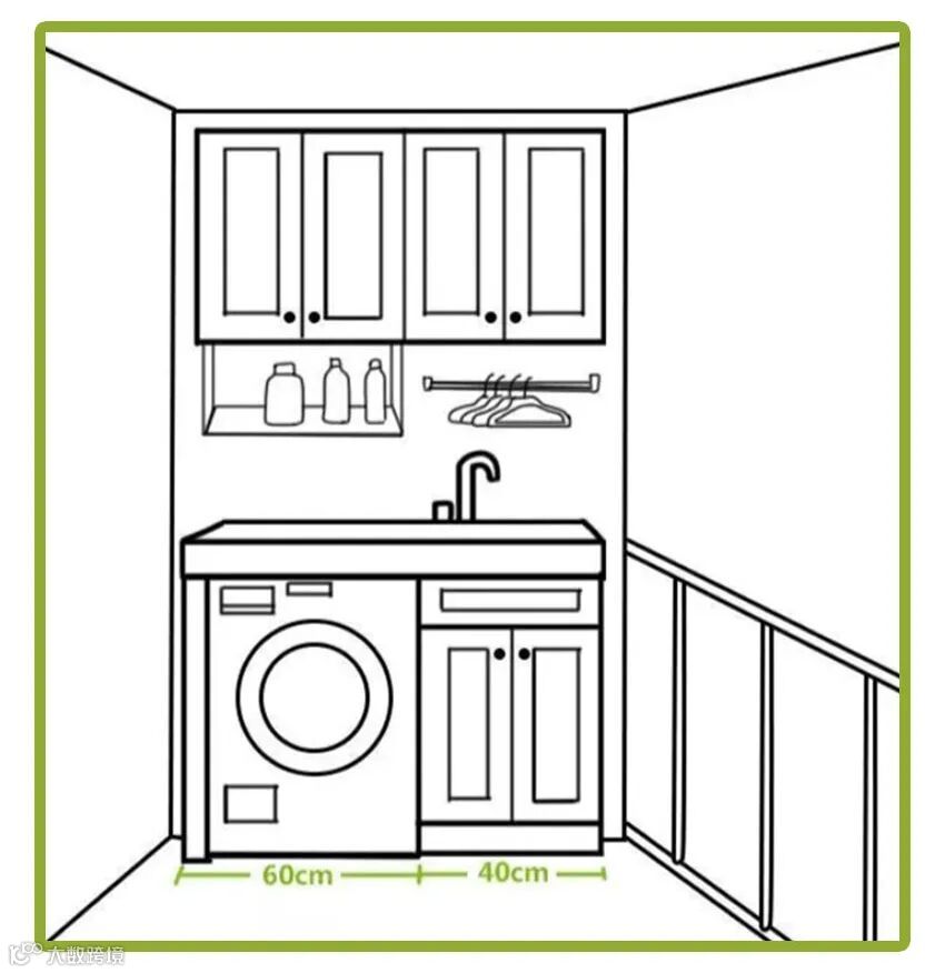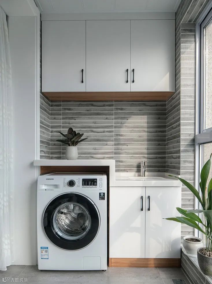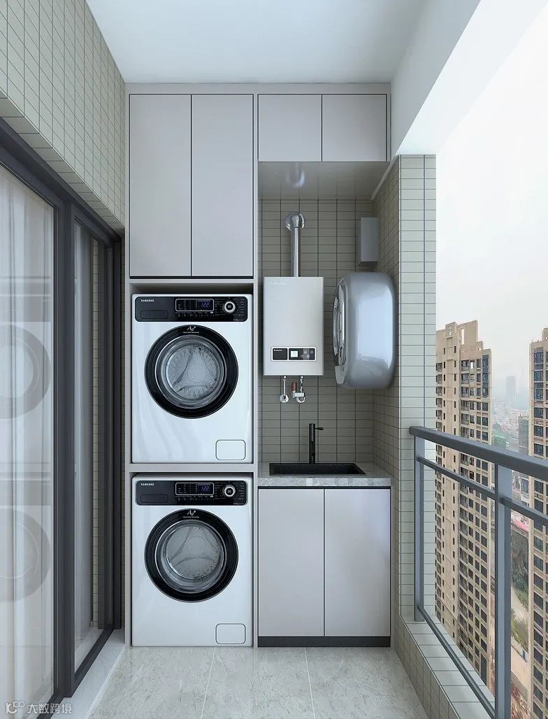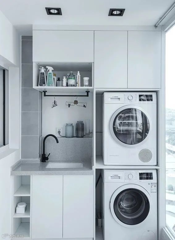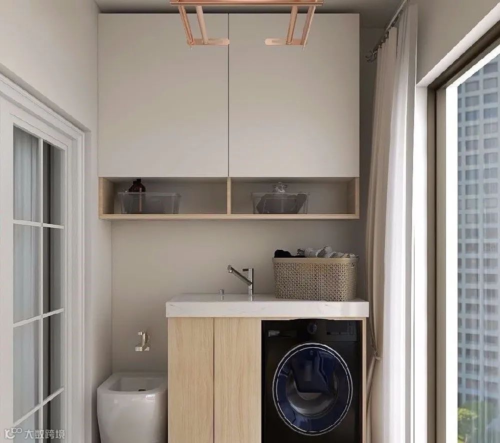 将阳台规划成洗衣及收纳的家务区是小户型家庭的不二选择。