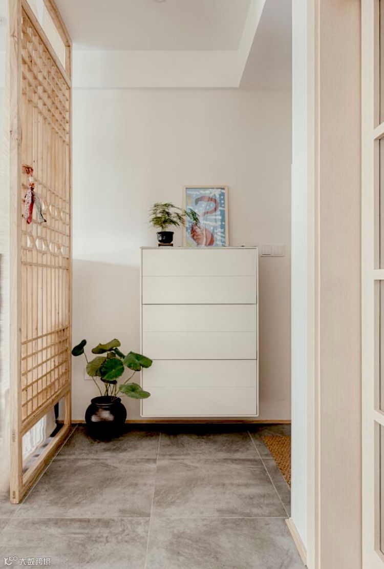 那么家里没有玄关的户型,要怎么补救?这个要分两种情况,如果进门空间比较紧凑,那就想方法放个鞋柜,实现收纳功能,如果进门空间充足,就可以设置一个隔断,实现玄关区的独立。