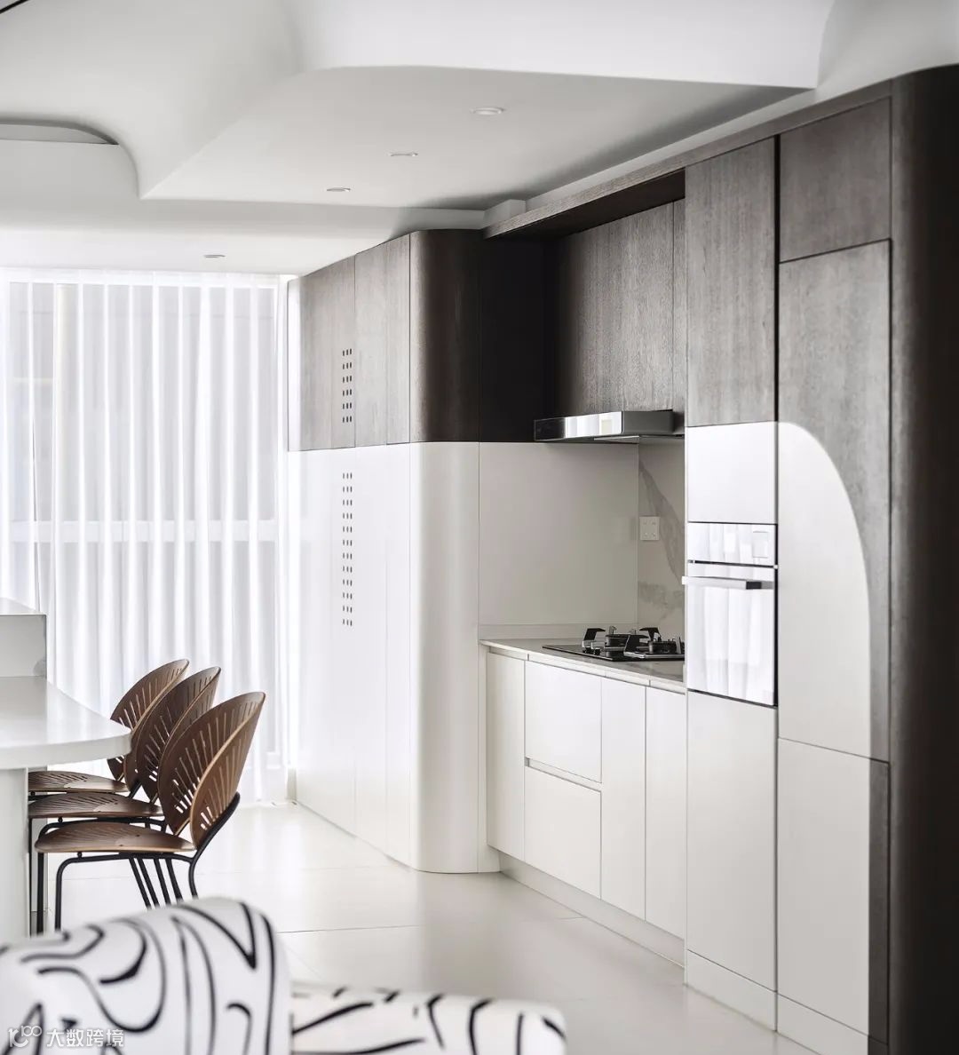 ▲ 厨房两侧分别增加高柜,一边预留冰箱烤箱的位置
