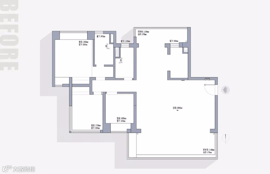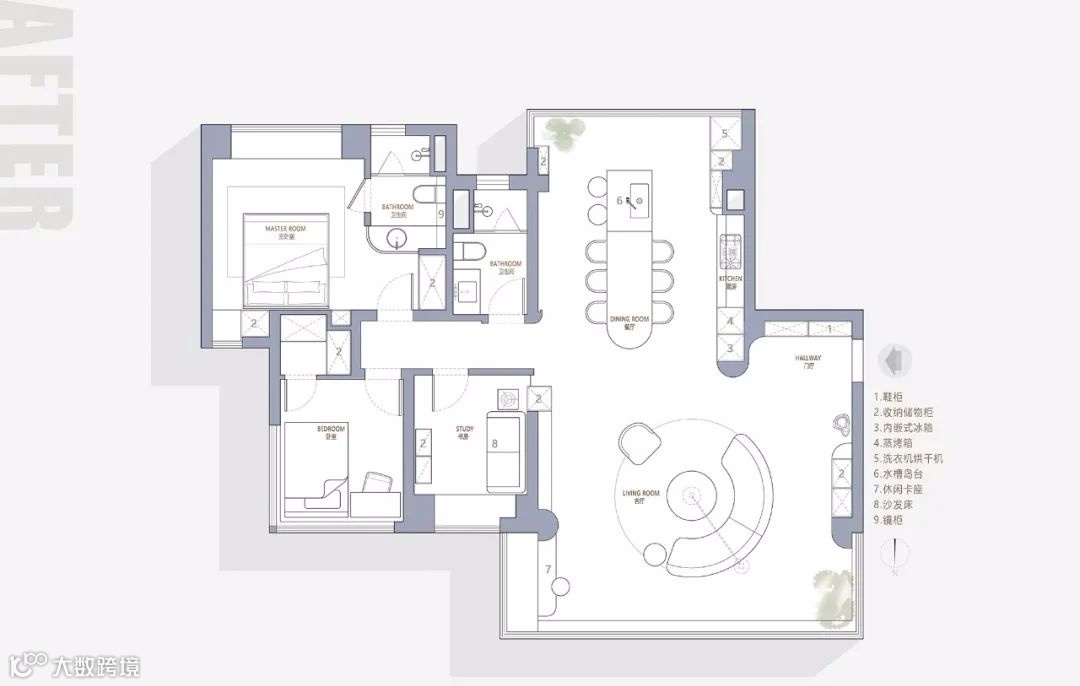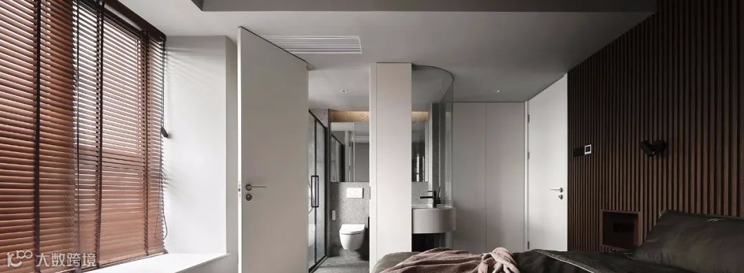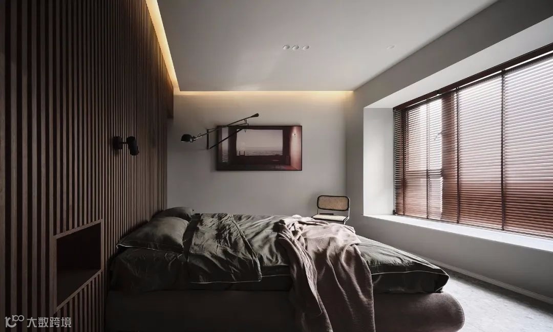 ▲ 主卧,原本进门直对主卧卫生间门,进深过小显得局促,调整卫生间门的位置和床的布局,保证视线通透的同时让空间有一定的趣味