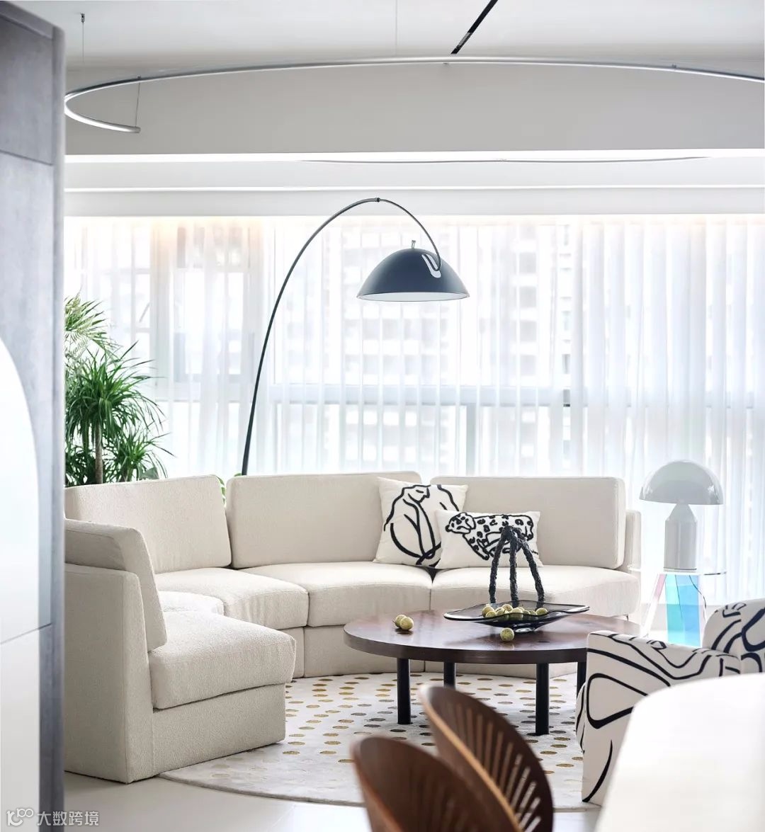 ▲ 客厅纳入阳台,加大使用面积,满足放置大体量沙发和茶几,满足多人围坐,增进互动,整体提升美感和舒.适感