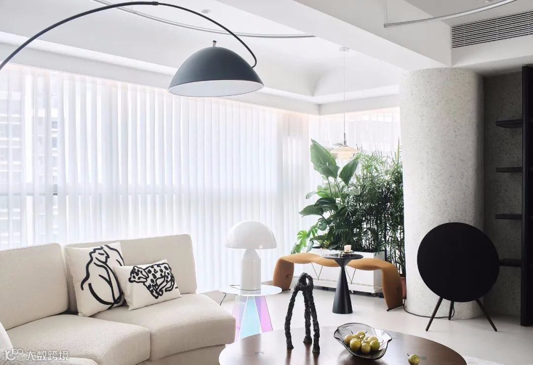 ▲ 阳台打造休闲一隅,将阳台墙垛包圆后形成分界,柱体也和其它曲面进行呼应