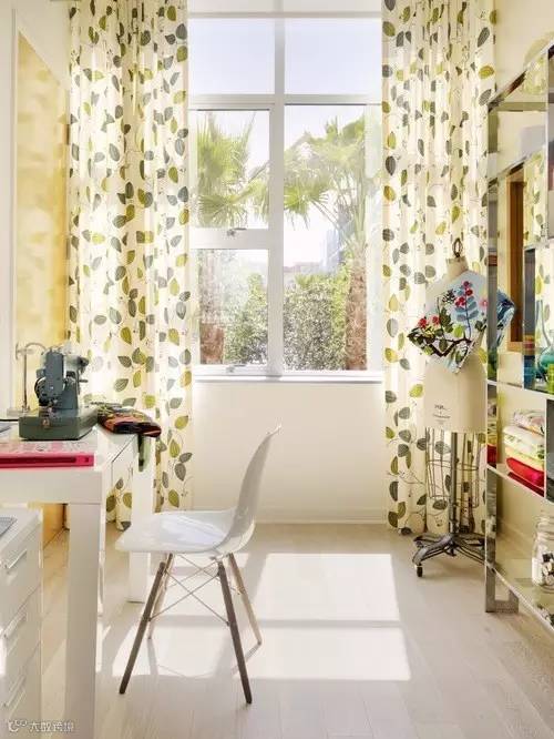 窗户外面有绿植,挂上树叶形状的窗帘很有意思,拉上窗帘也觉得绿意盎然▼
