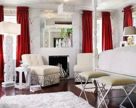 墙纸上点点的红色,搭配起了整屋子的红色窗帘,大胆又惊艳。