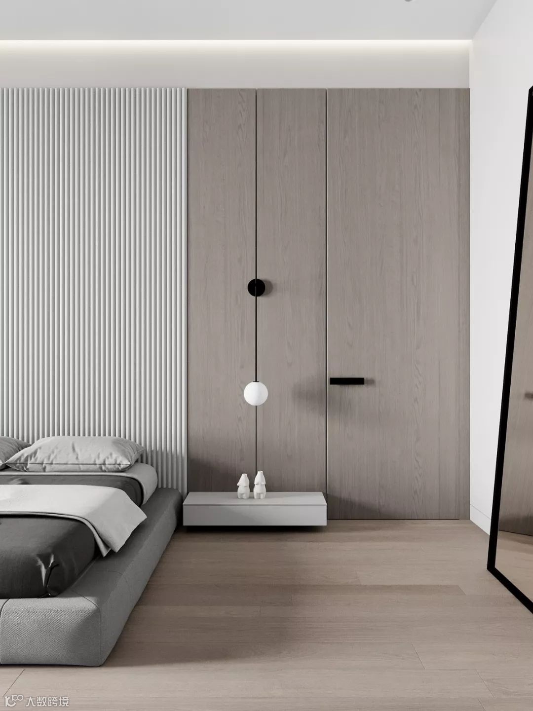 中性空间与天然材料间寻找平衡点。用中性灰为主色调,极简即极奢,用其他色调来区分空间的层次,高级又简单的配色方案。