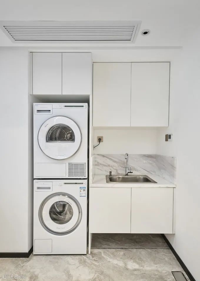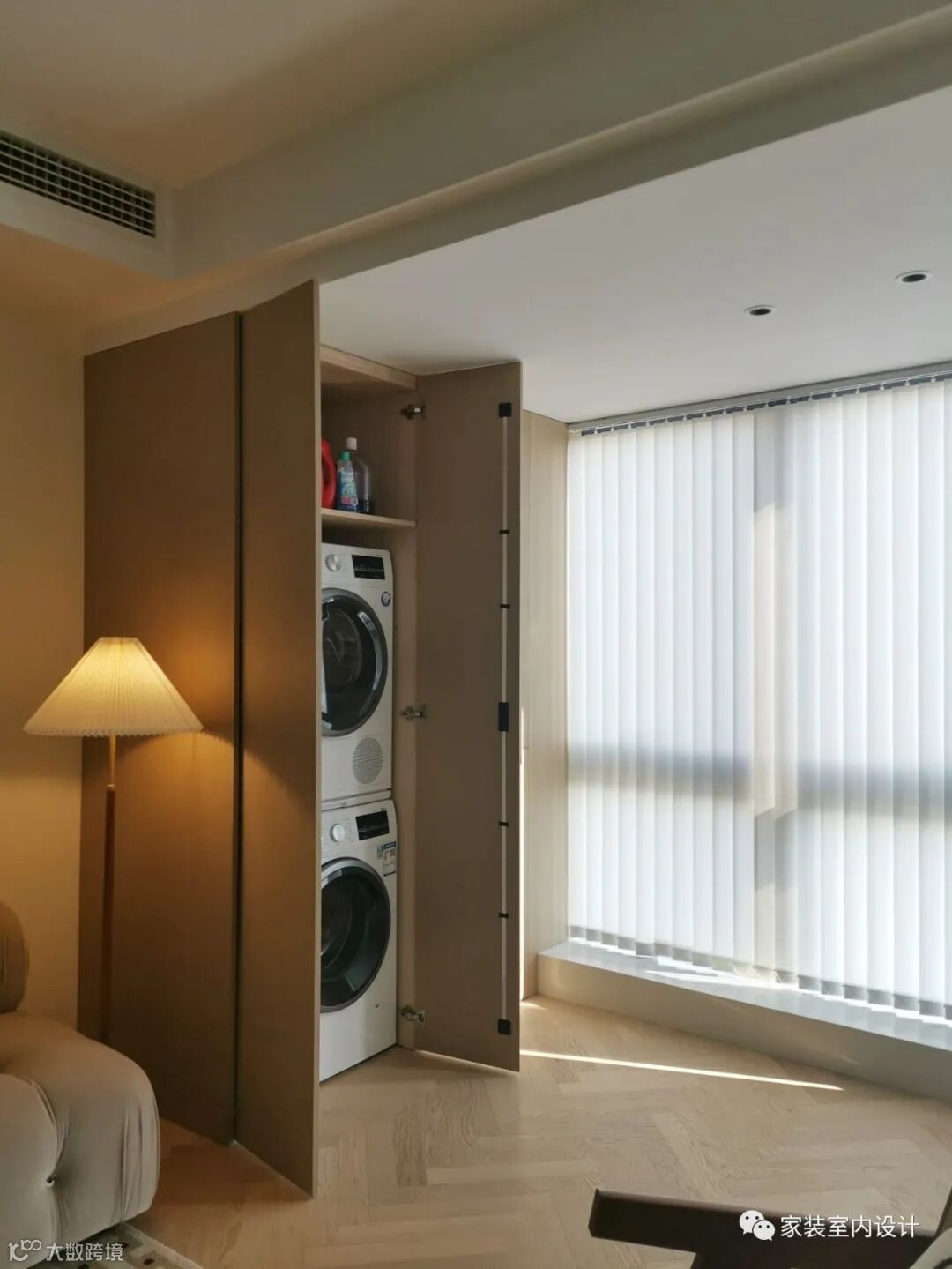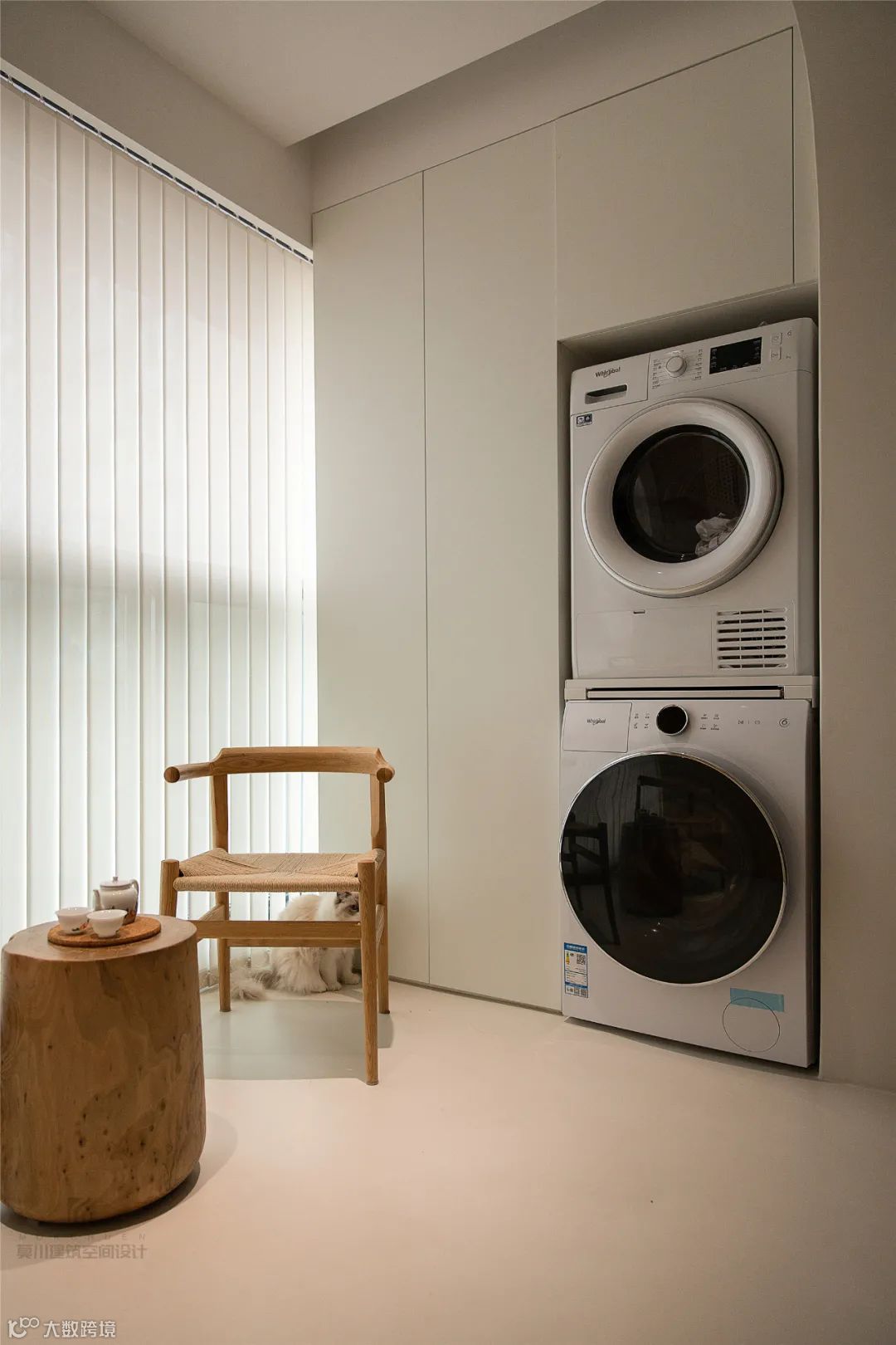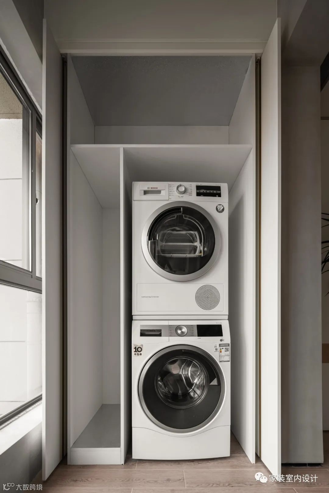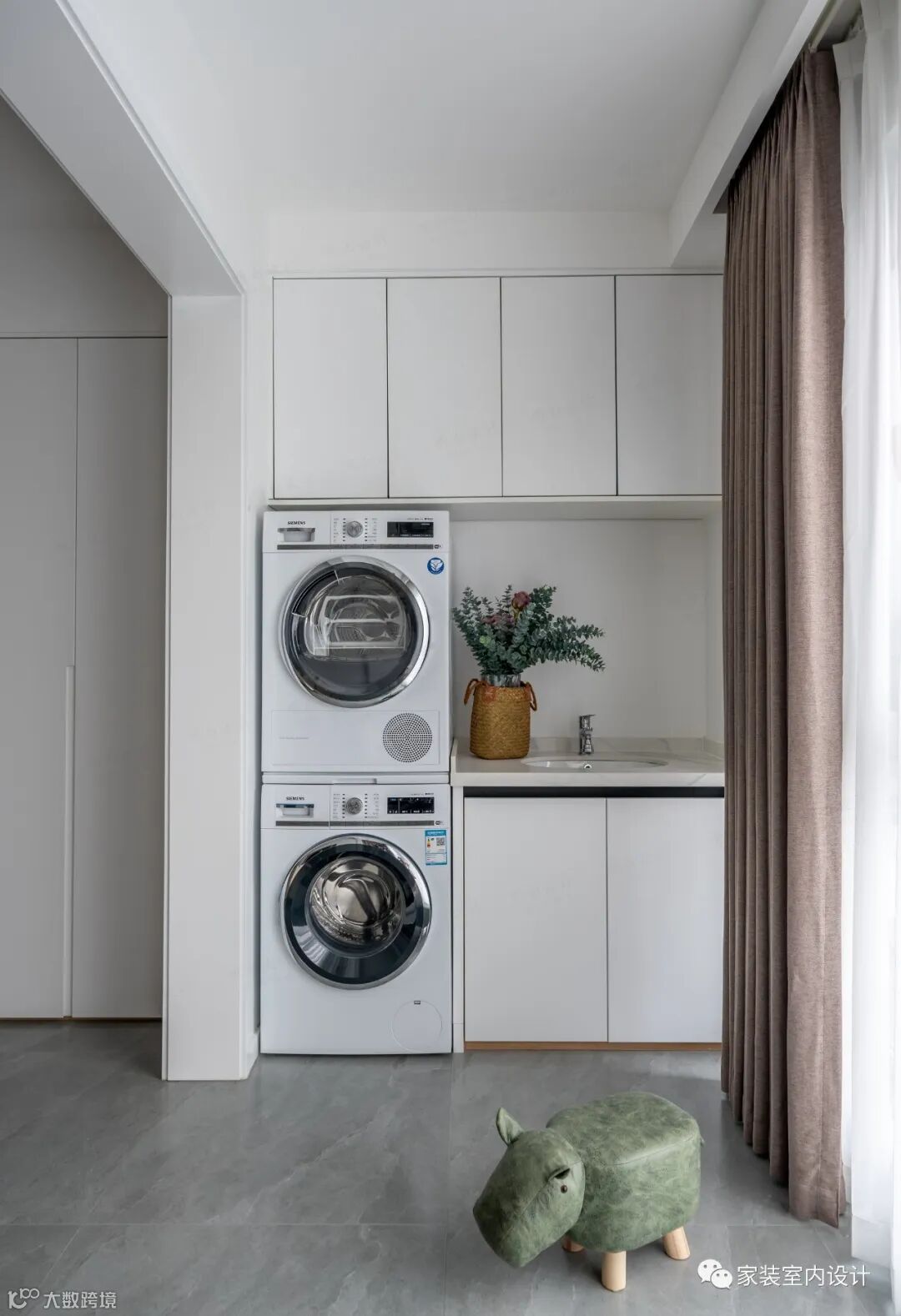 阳台一直都是作为家庭的洗衣晾晒区,将洗衣机结合洗衣柜的设计,不仅解决了洗衣问题,还可以放置洗衣用品和杂物,完美的打造了一个洗晒阳台。