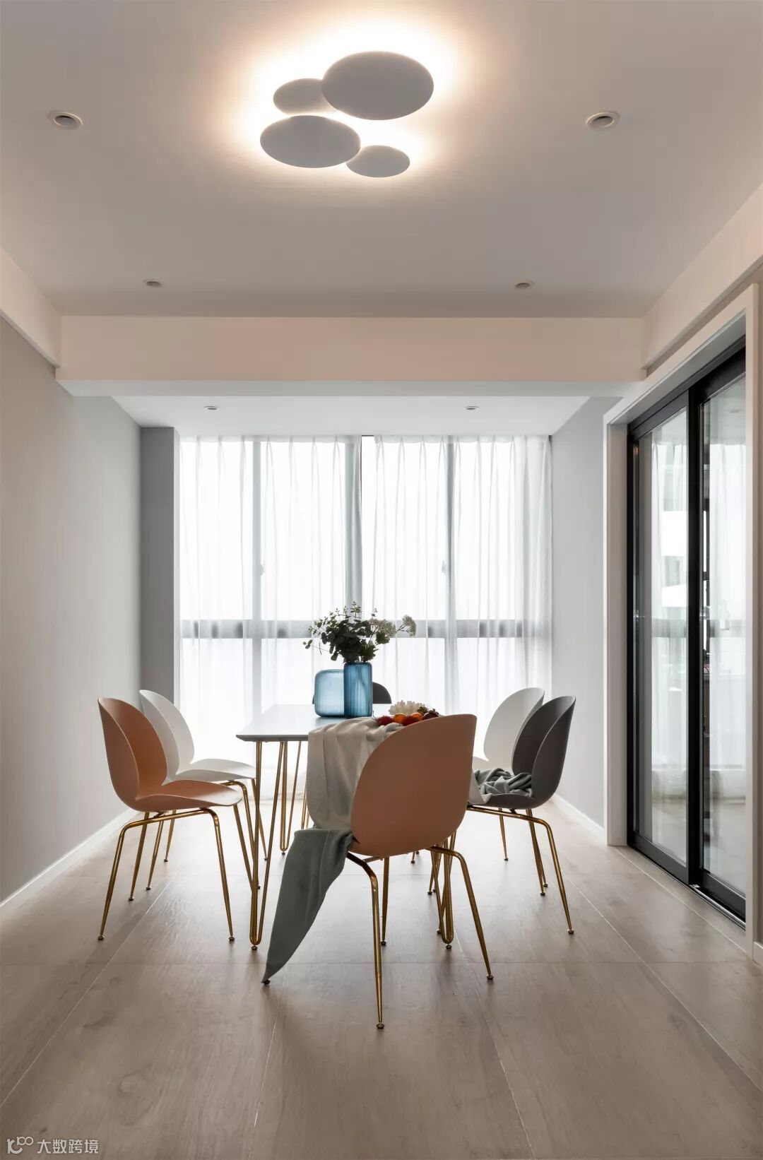 餐厅天花上装了一组独特的圆形组合吸顶灯,在优雅的外观设计下,还使得空间更加温馨有层次感。