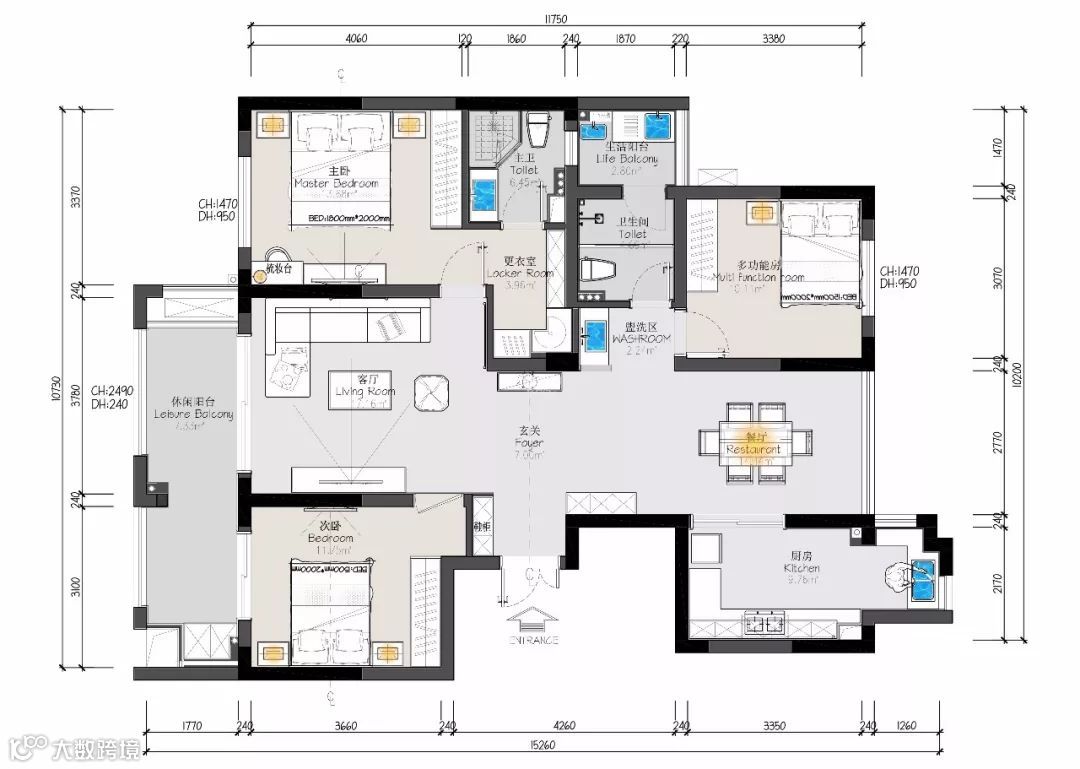 主人的小衣帽间,在衣柜的拐角空间以开放的设计,使得这个空间利用有着更多的可能性。