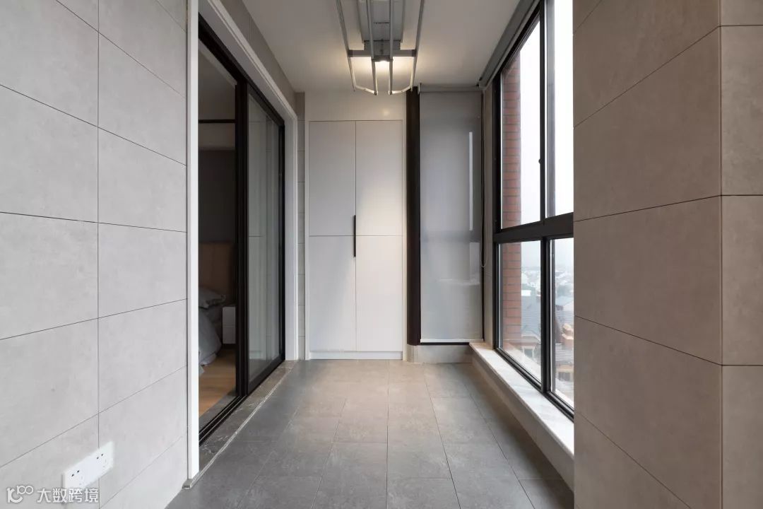 封闭的阳台,装了电动晾衣架,侧边还做了一个收纳柜,简洁的空间,实用而又轻松。