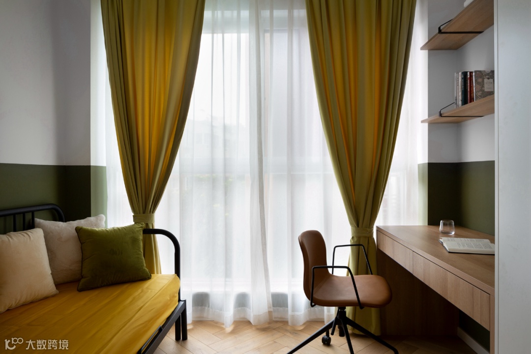 空间与人在家具陈设传递出来的宜人气氛之间紧密相连,她可以毫无负担的沉浸在这一方舒适的空间里。