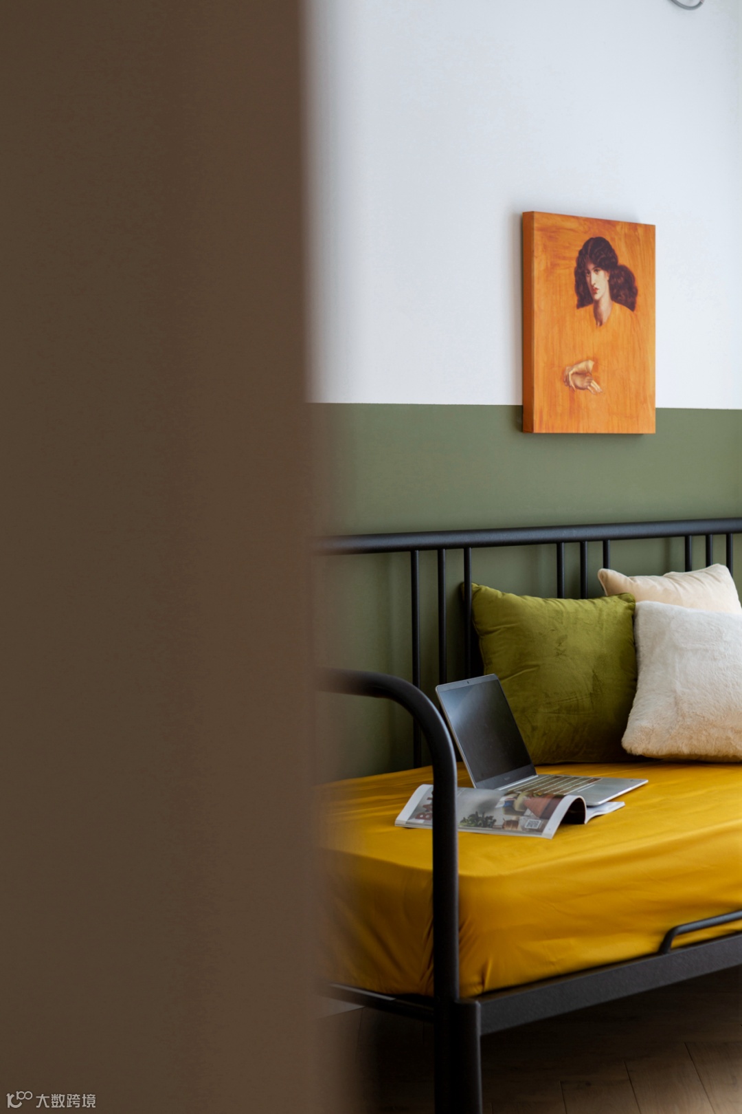分色墙使用雪松绿,与百叶窗搭配,为客房打造出幽雅的氛围。