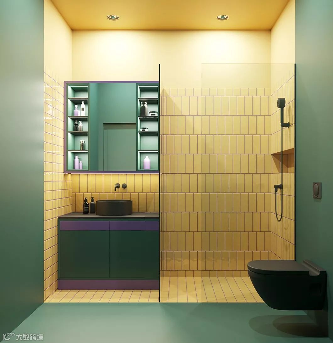 以往的洗手间设计,基本都是大面积石材铺贴,大部分都是黑、白、灰三个色系,但是随着时尚的变革,人们的审美也发生了改变,更多的业主选择了一些个性化的墙面颜色来打造卫生间。