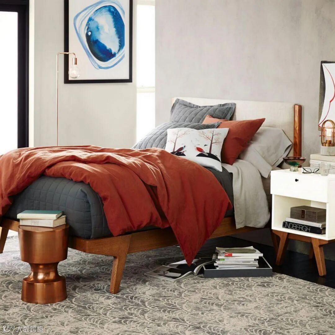 大面积使用蓝色时,建议搭配明亮的白色或浅色原木家具。跳跃的撞色能打破蓝色的低气压,中和整体色调,让空间更有层次感