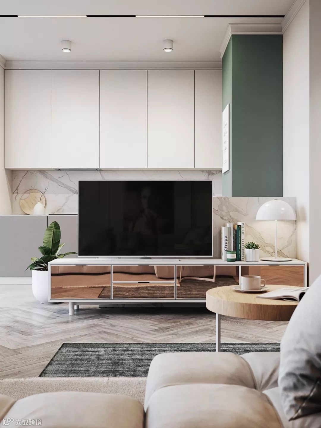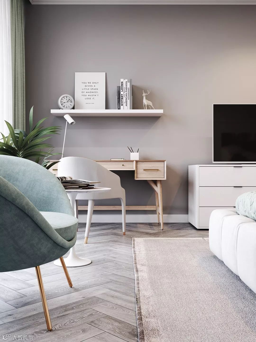 高级灰+绿色,当仿若无声的世界沾染上生命的悦动,当低沉内敛的空间出现活跃十足的张力,优雅的色调透过时尚感官唤醒了心底悸动。