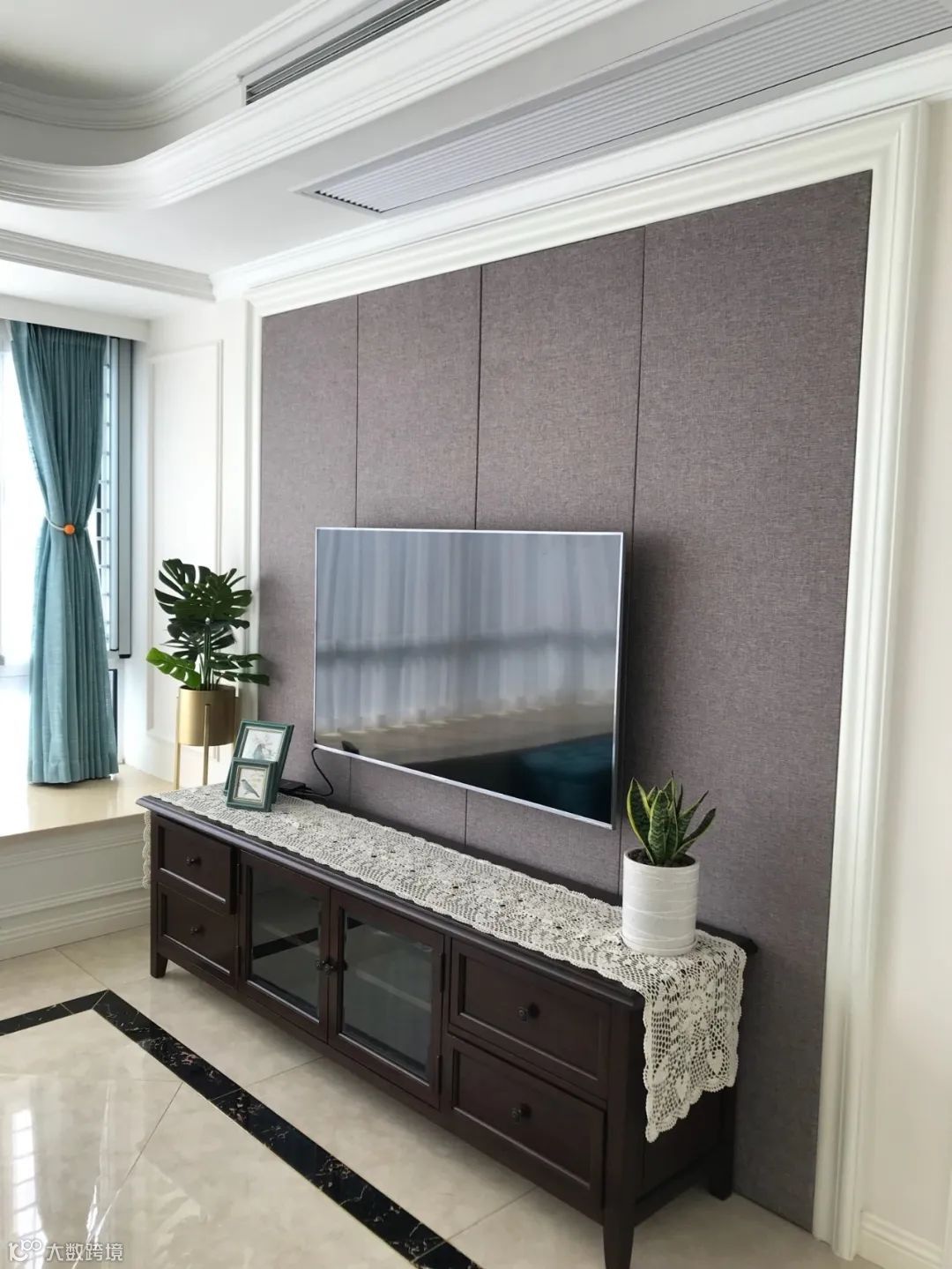 电视墙是客厅装修的重心,用硬包的质感可以大大提升空间的档次气质;不过,因为电视墙有电视机的遮挡,做硬包的背景会显得有点浪费,所以在客厅的硬包背景墙,往往是用在沙发墙的比较多。