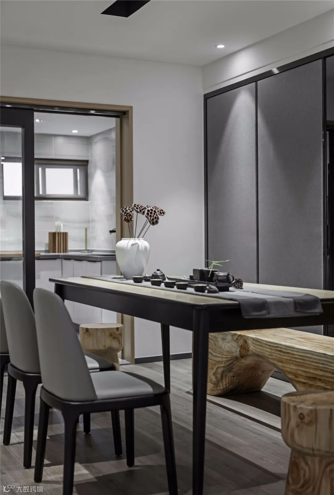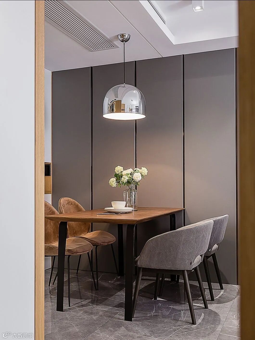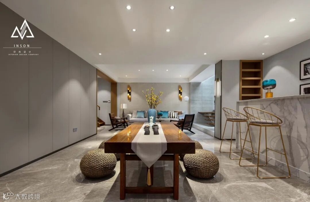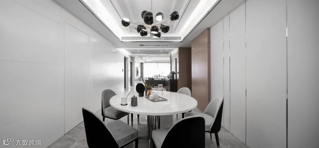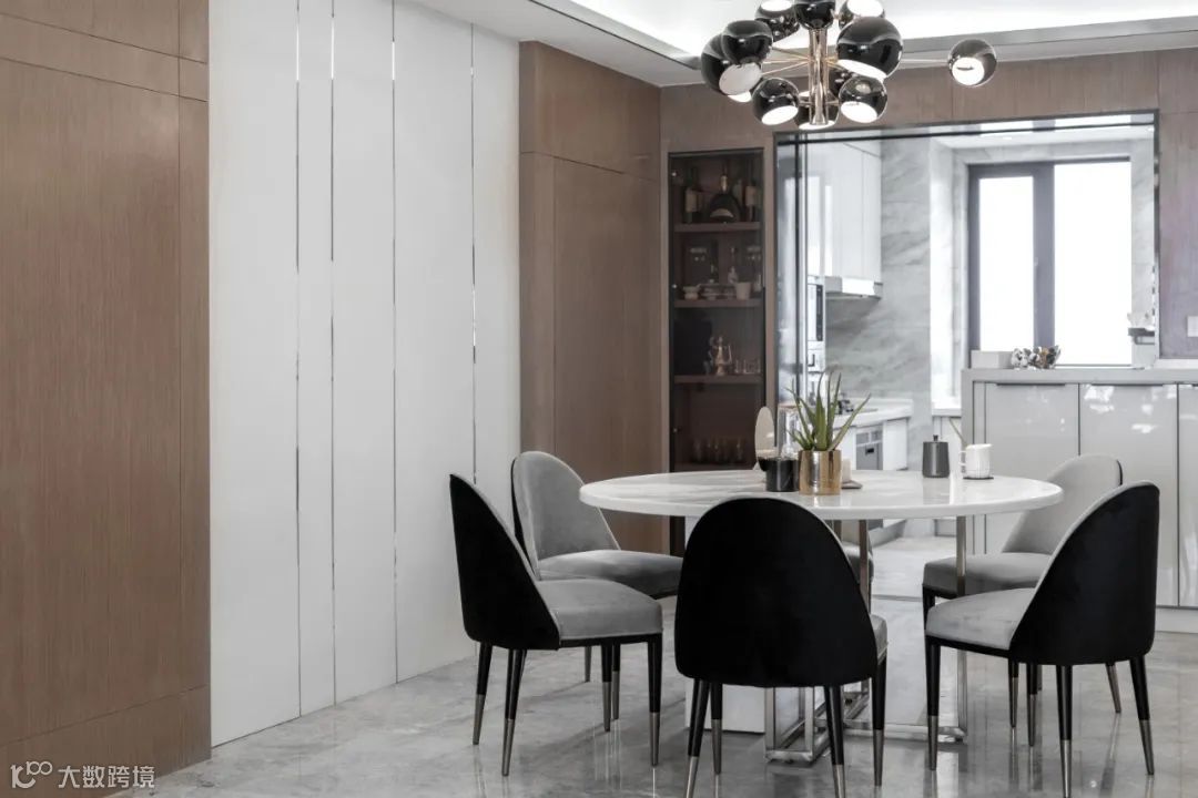 餐厅的背景墙在靠放餐桌或餐边矮柜的基础上,硬包质感的搭配也是很和谐实用,让用餐氛围显得更加华丽端庄;而且餐厅往往是与客厅相连的空间,硬包的餐厅背景墙还能与客厅的背景墙相互接洽融合,保持空间质感的统一与和谐。